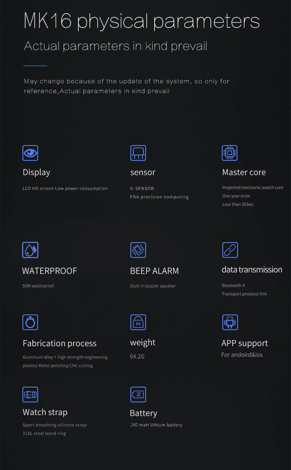 LOKMAT MK16 Smart watch Bluetooth информационное push-уведомление ф...