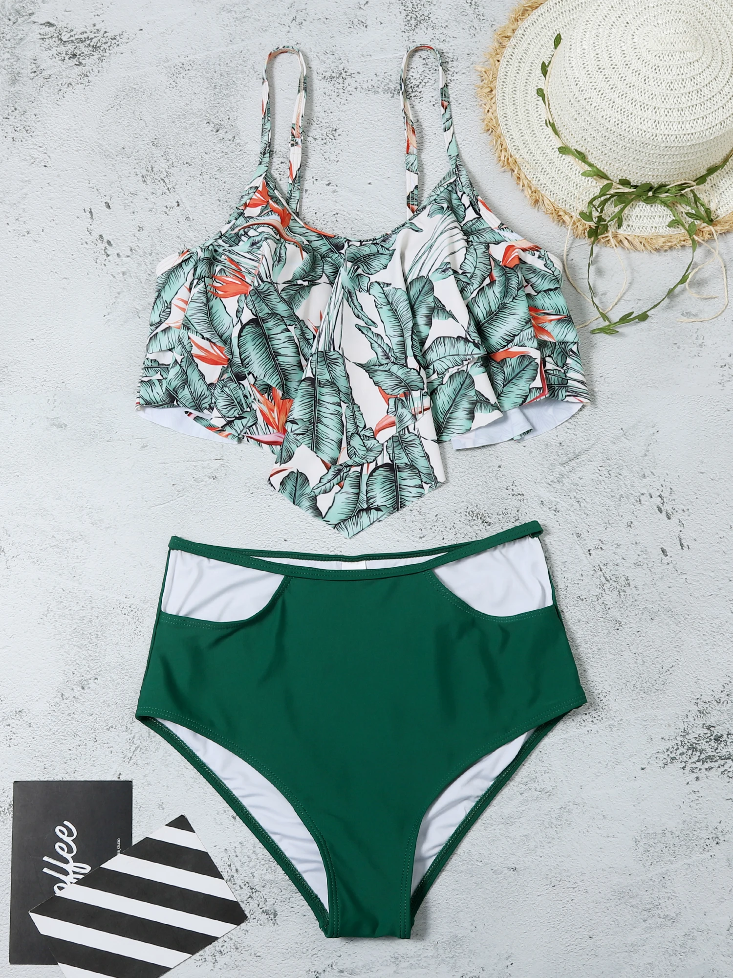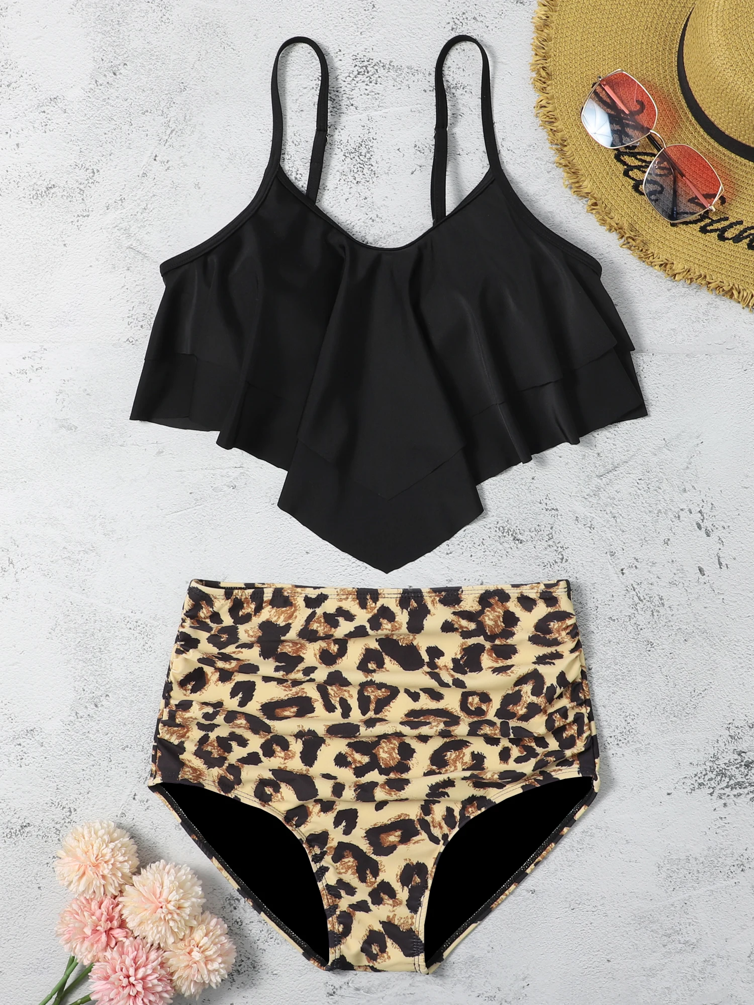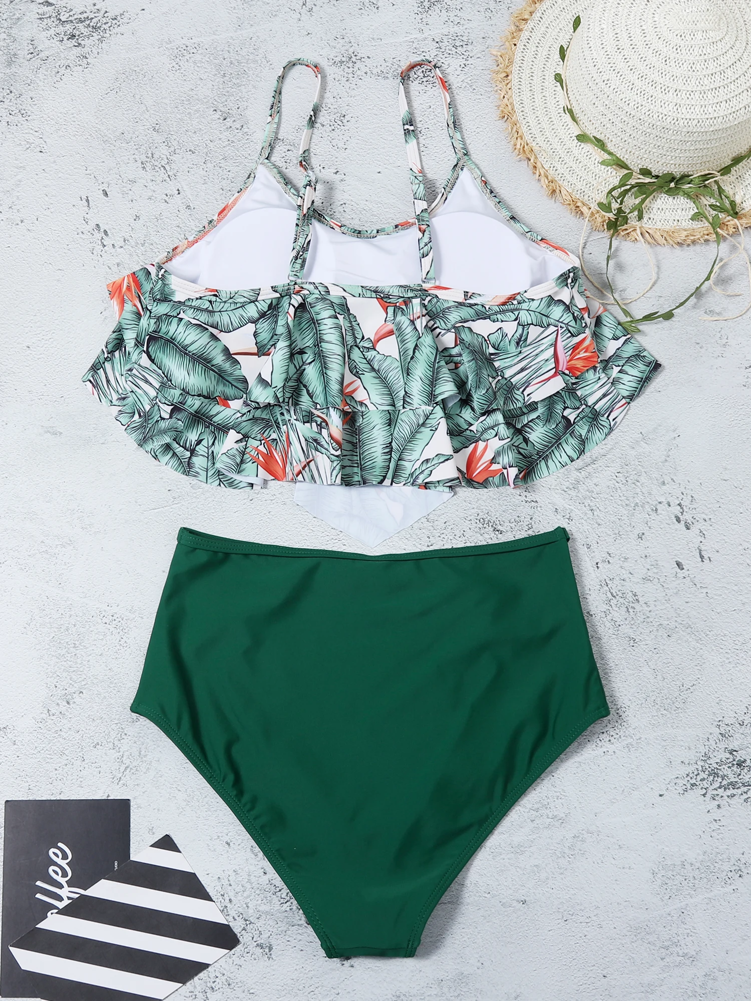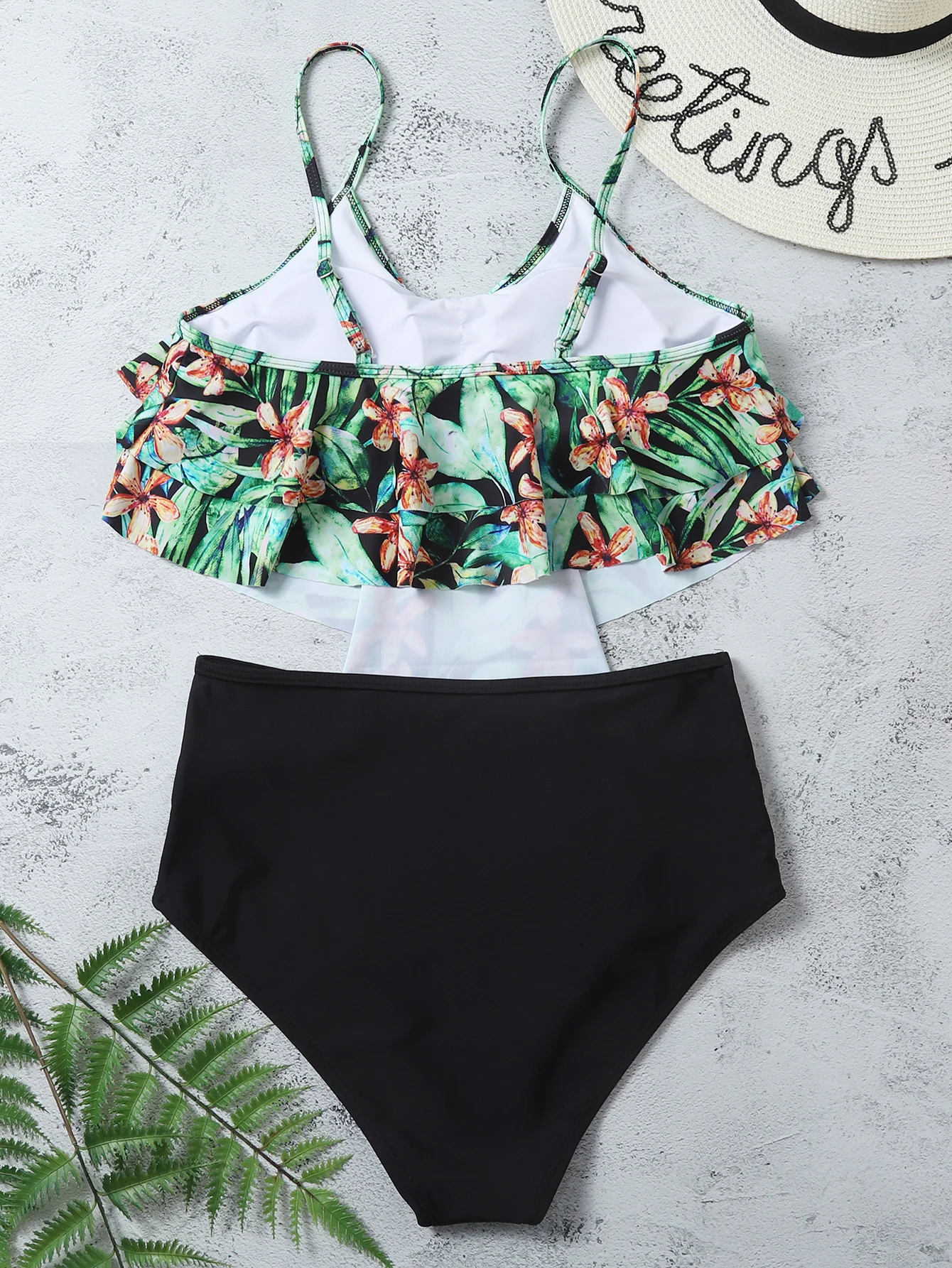Сексуальное бикини с тропическим и леопардовым принтом и рюшами, женский купальник большого размера с высокой талией, купальник пуш-ап, пляжный костюм для ванной, 2020