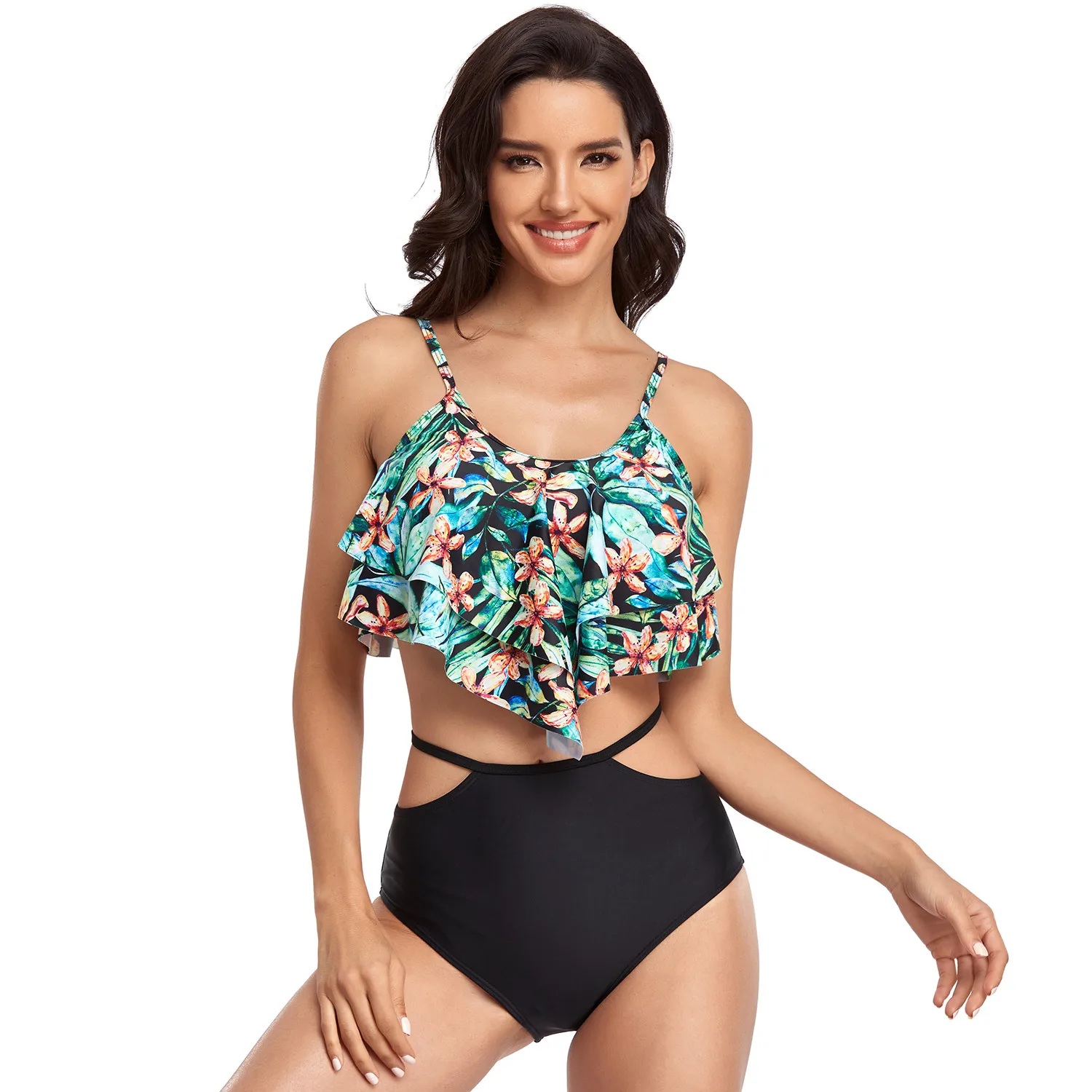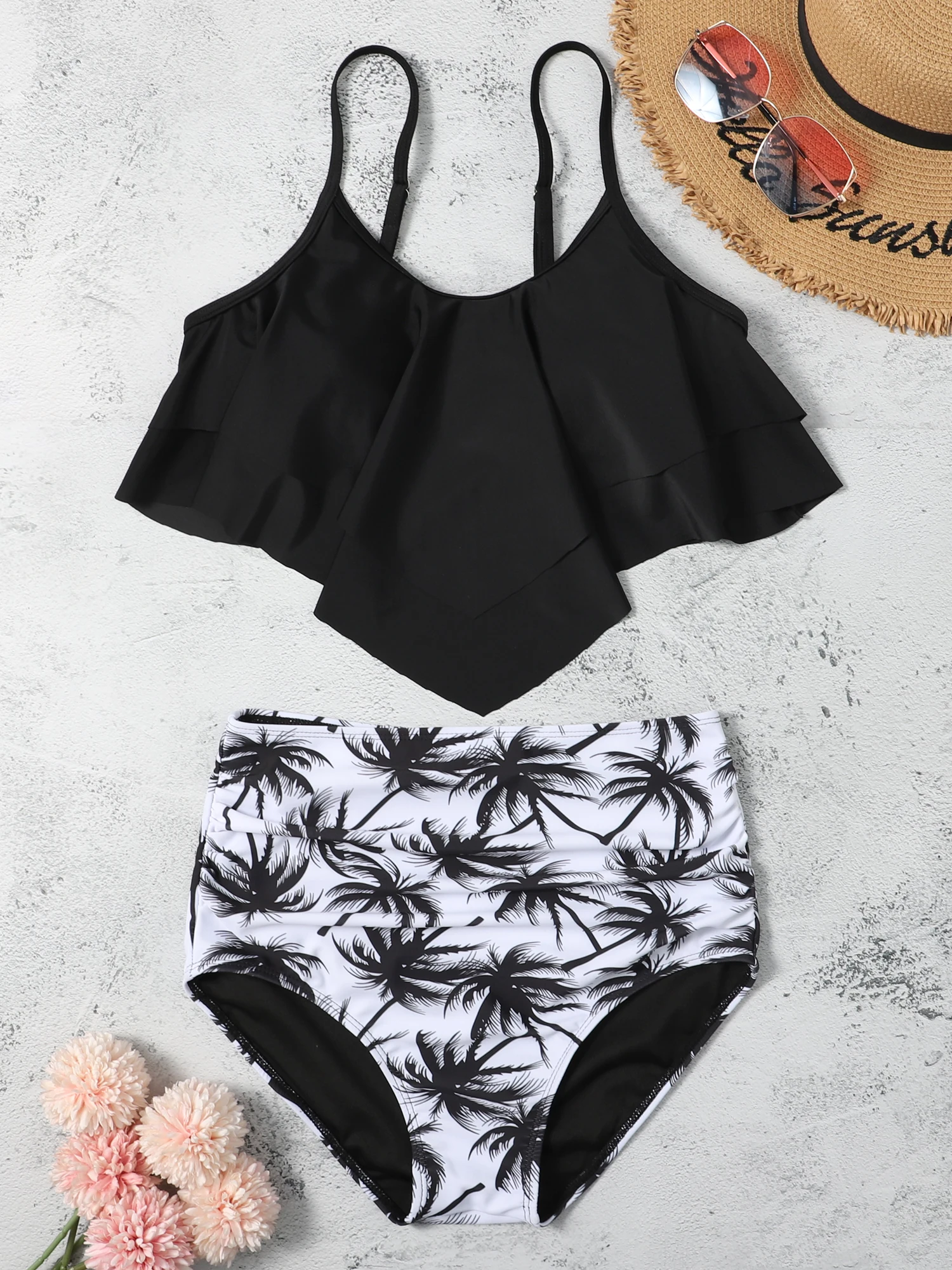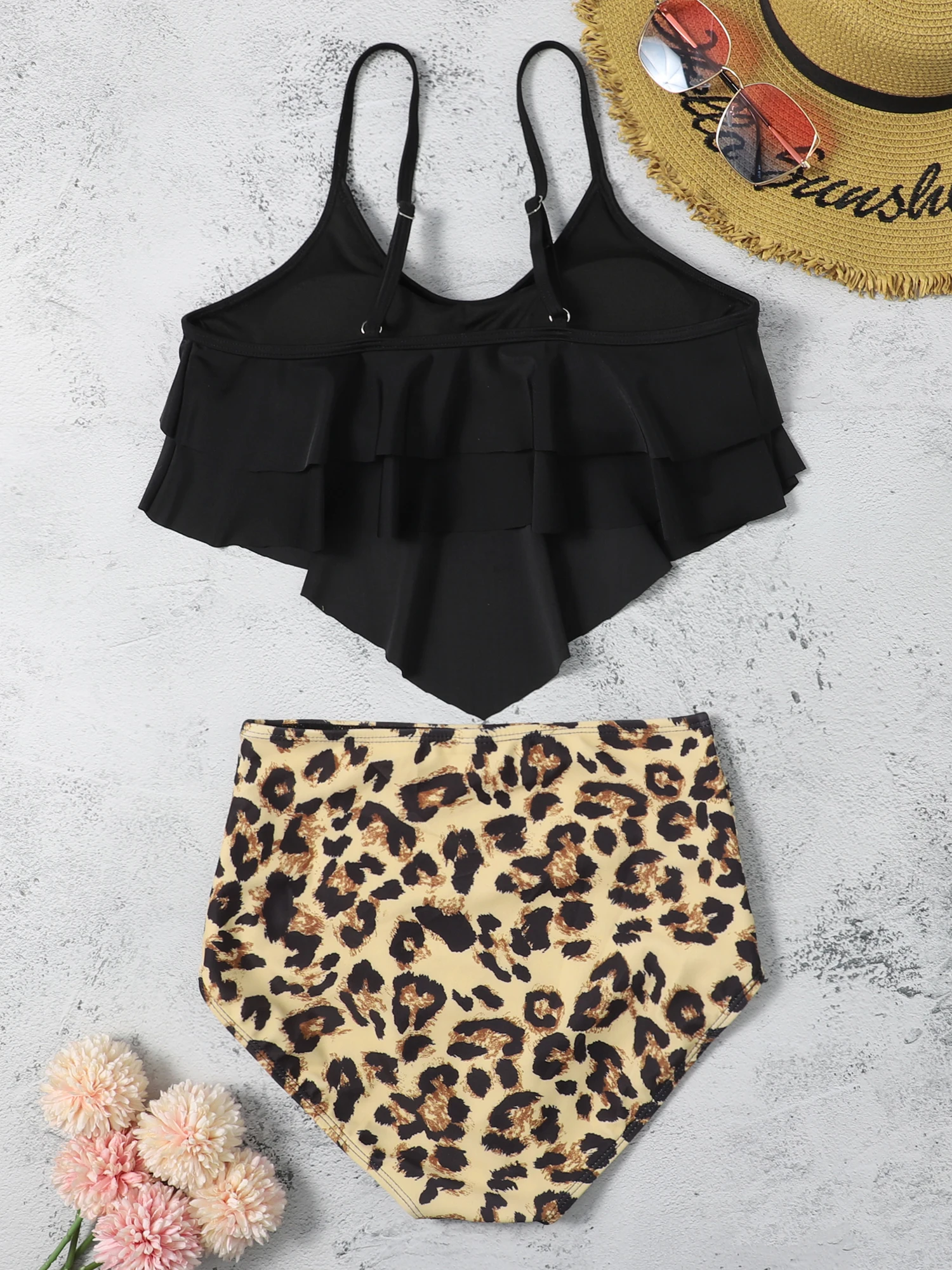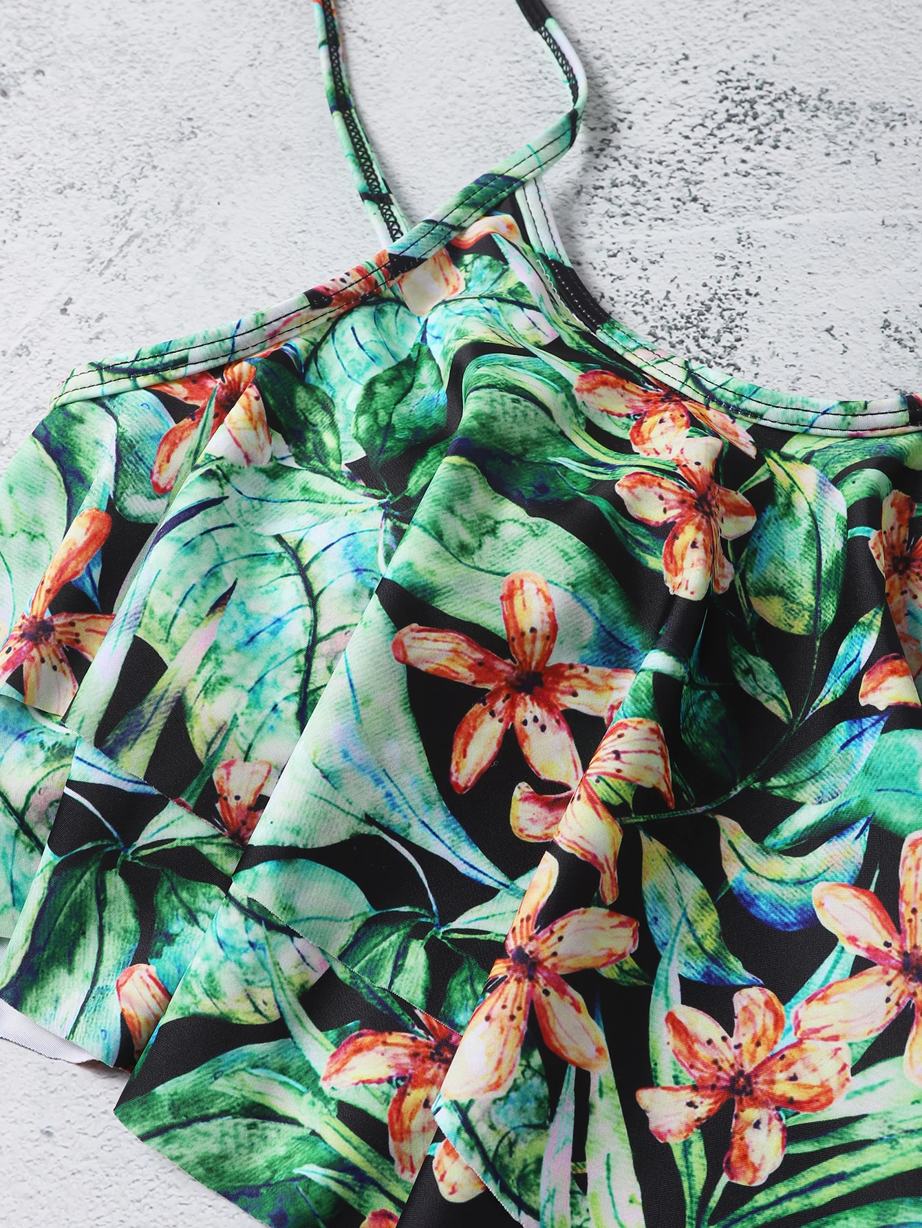 Сексуальное бикини с тропическим и леопардовым принтом и рюшами, женский купальник большого размера с высокой талией, купальник пуш-ап, пляжный костюм для ванной, 2020