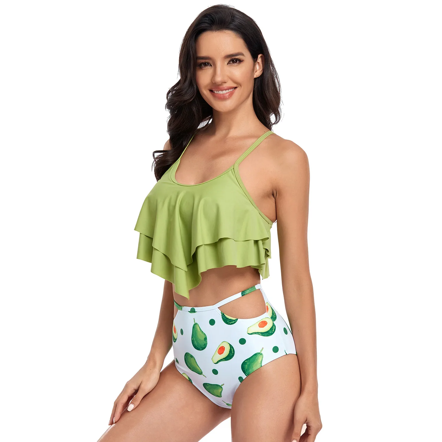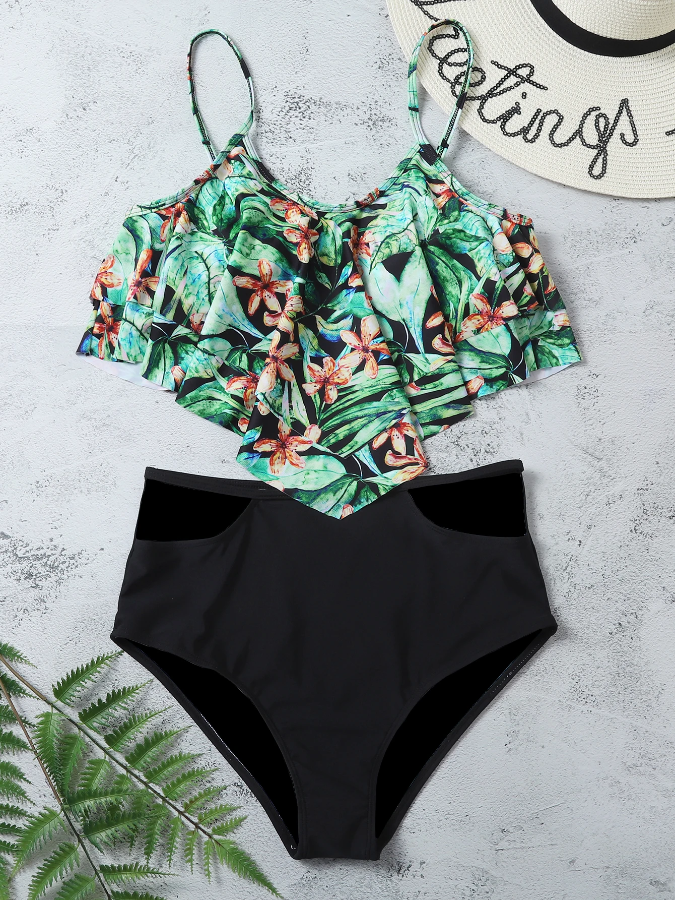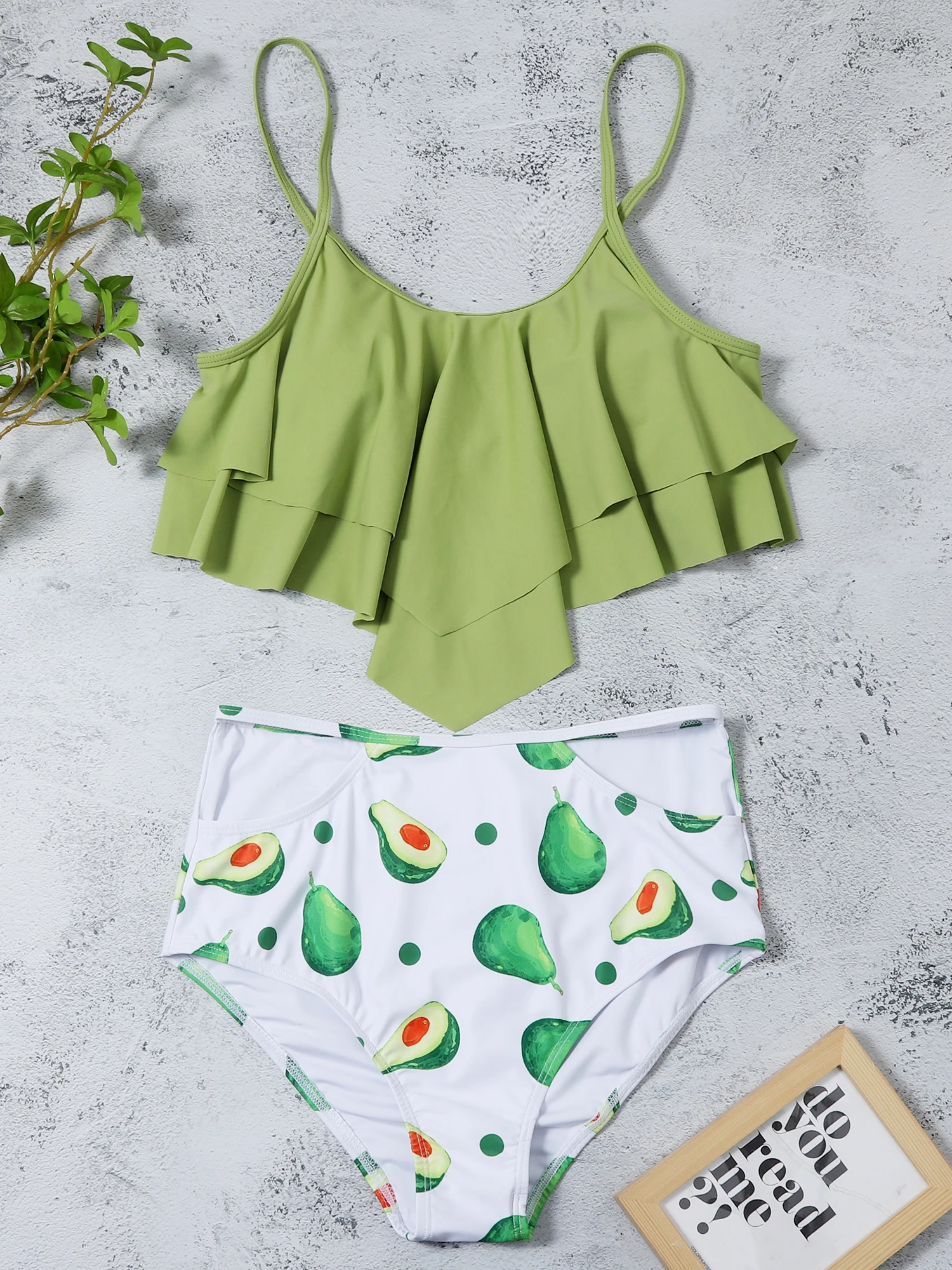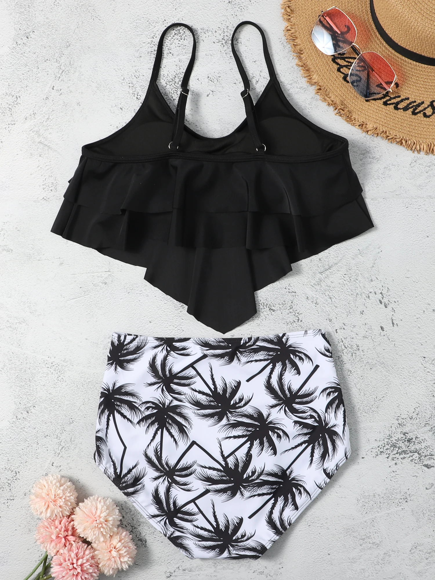 Сексуальное бикини с тропическим и леопардовым принтом и рюшами, женский купальник большого размера с высокой талией, купальник пуш-ап, пляжный костюм для ванной, 2020