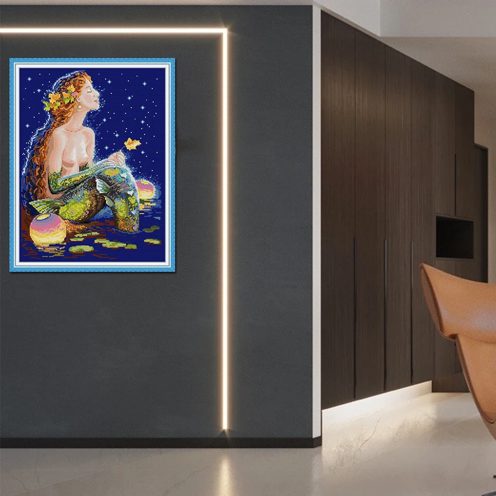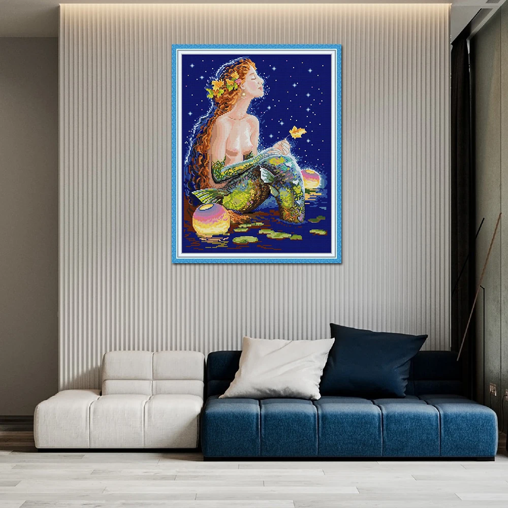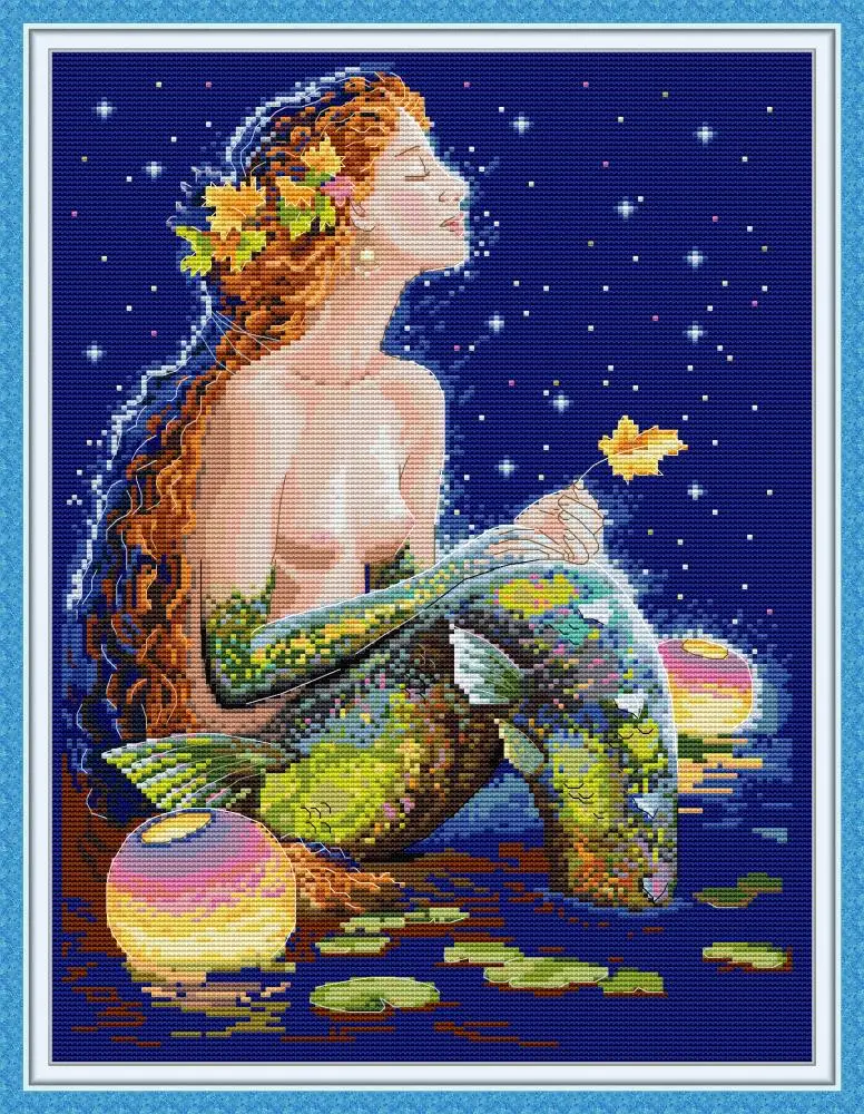 Набор для вышивки крестиком Joy Sunday с изображением русалки под звездами RA349 14CT 11CT