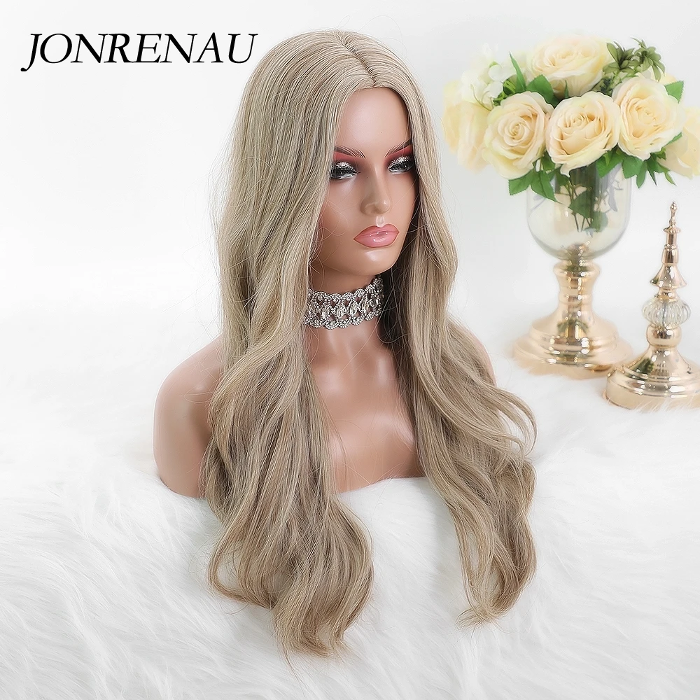 JONRENAU, Длинные Синтетические волнистые коричневые корни, Платино...