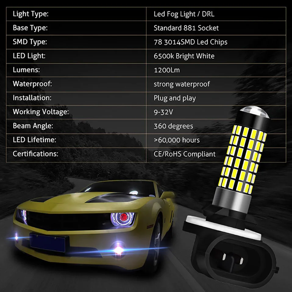 2 шт. 1200Lm автомобиля Автомобильная Противо-Туманная светильник s H27 880 светодиодный туман светильник s лампочки 881 H27 H1 H11 H3 Противотуманные фары Дневные Фары Светильник s светодиодный, вождения, бега, светильник лампы
