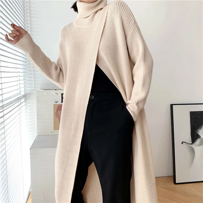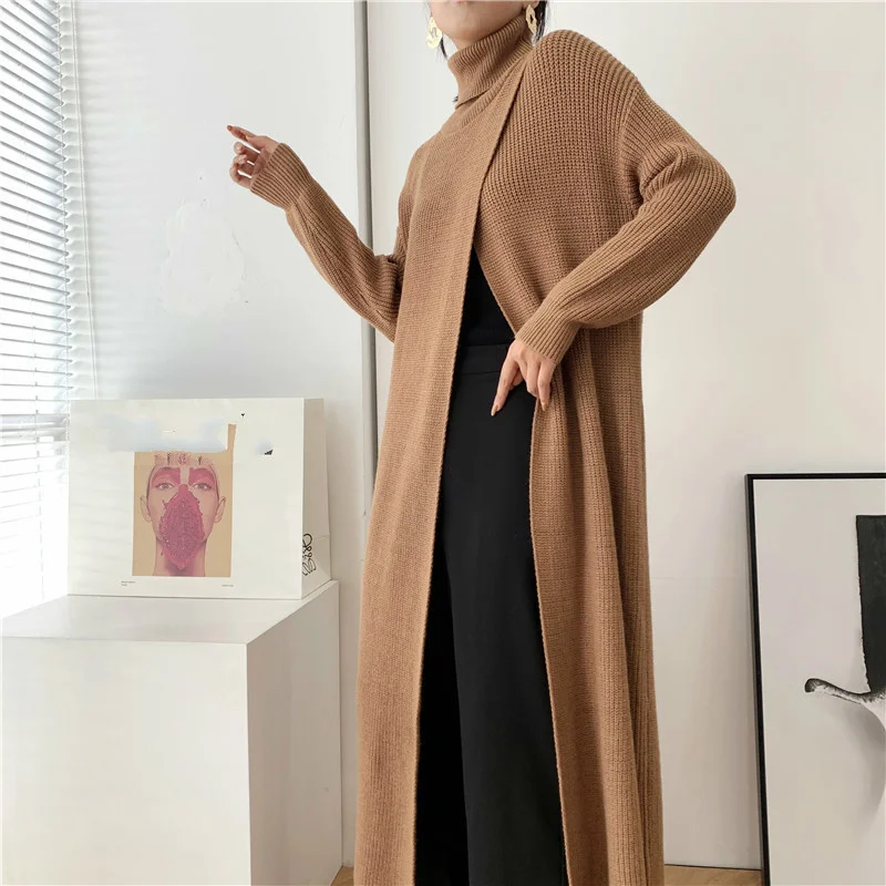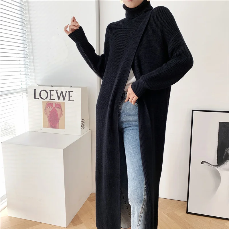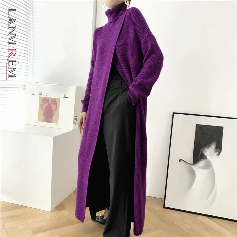LANMREM женский длинный свитер с высоким воротником, дизайнерский пуловер с разрезом, с длинным рукавом, новинка 2022, Kintted одежда, Famale YJ968