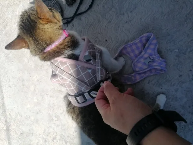 Жгуты быстро и хорошо упакованы. Модная, хорошо сделанная, хорошие материалы, легко надеваются и удобны. После нескольких минут обеда, кошка принимает и надевает без проблем ремни, после прогулки даже играть, а затем спать с ним. Так что все очень хорошо, спасибо продавцу, я рекомендую вам! Отличный продукт, отличные люди, отличная страна!