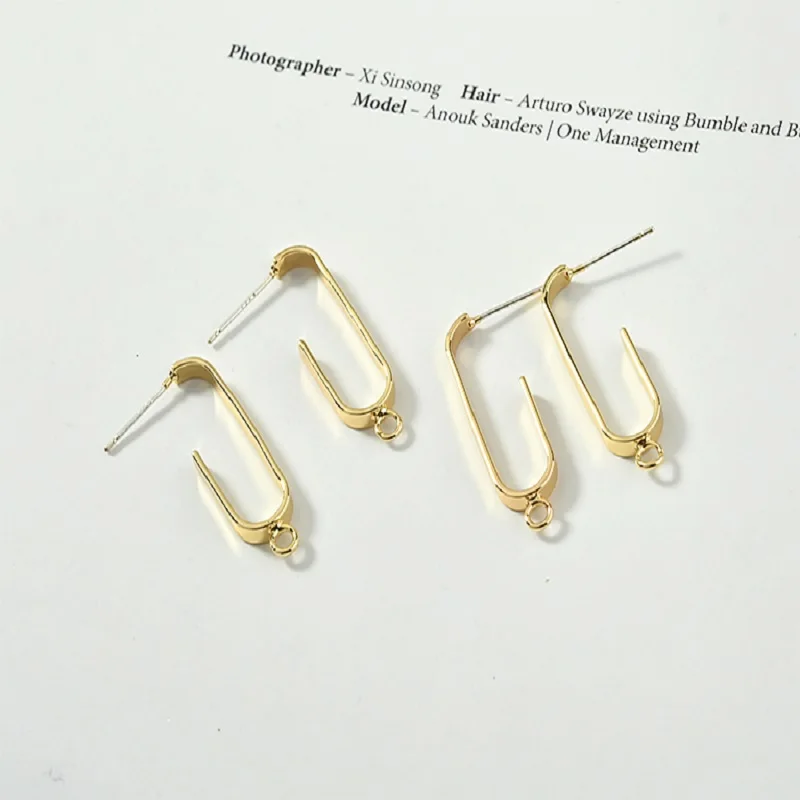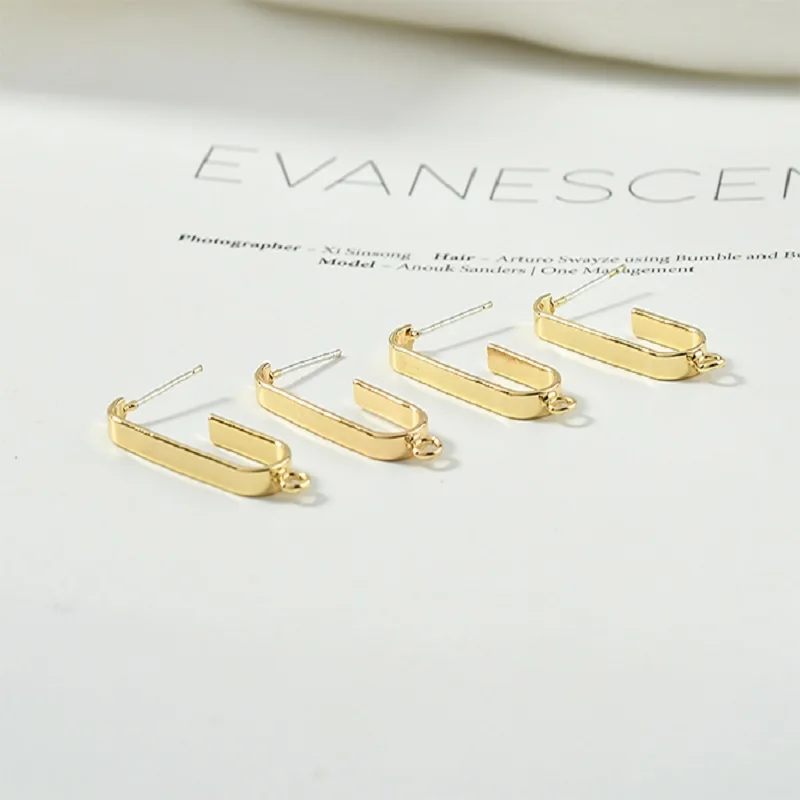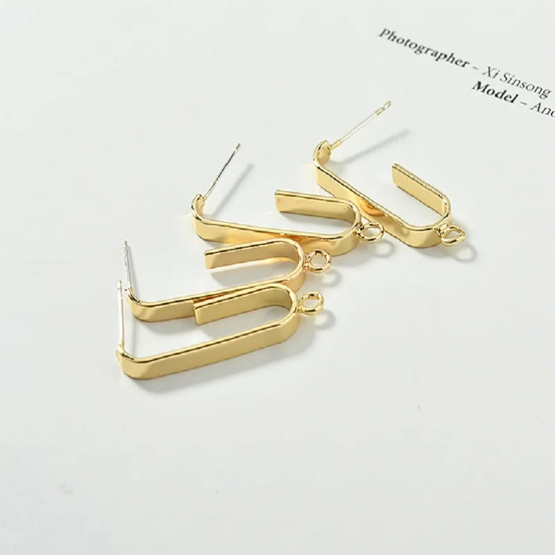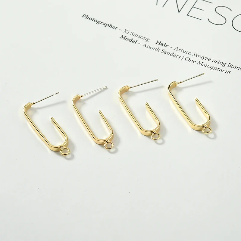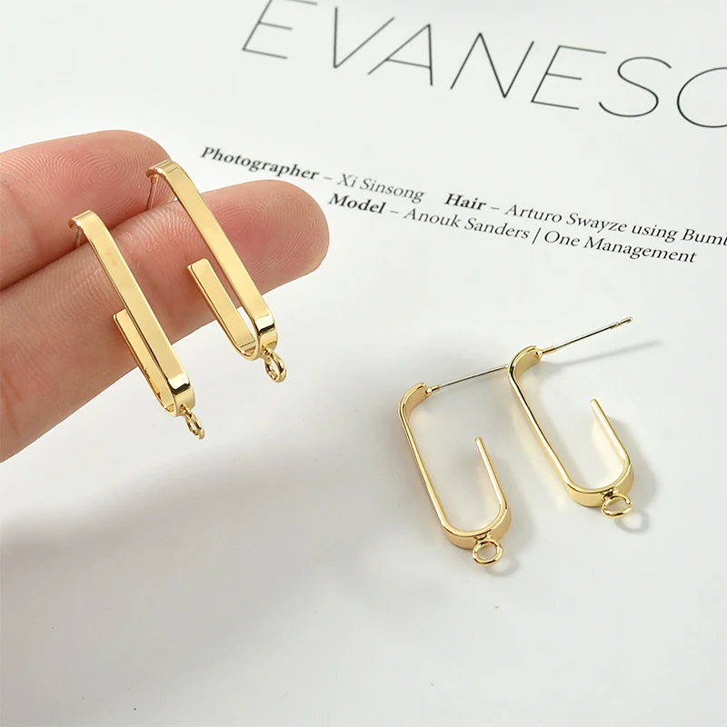 Серьги-гвоздики U-образные, с медным покрытием, 14 карат, золотые, простые, геометрические, с подвесной серебряной иглой, 2 шт.