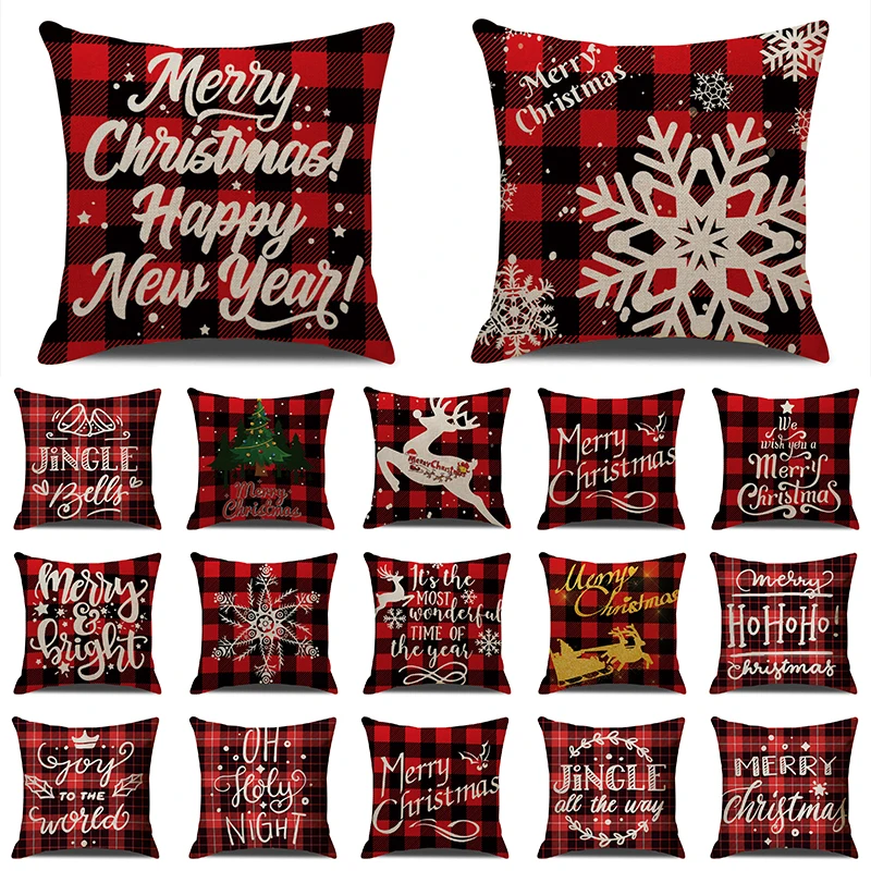 1 шт. с рождественским оленем, черный, красный плед с буквенным узором хлопковая льняная Подушка Чехол для подушки на диван-кровать для дома декоративная наволочка 40674