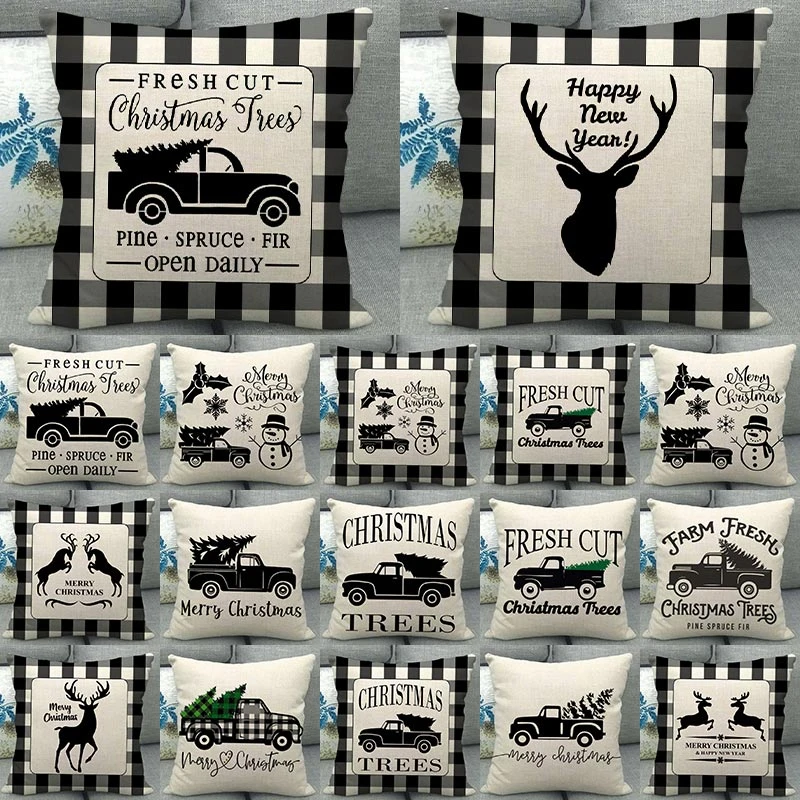 1 шт. Рождественская елка с оленем, черно-белая хлопковая льняная наволочка с рисунком алфавита, декоративная наволочка 40676