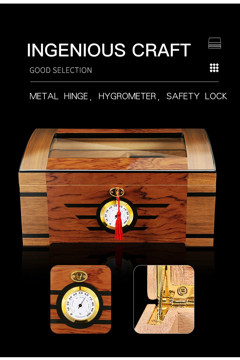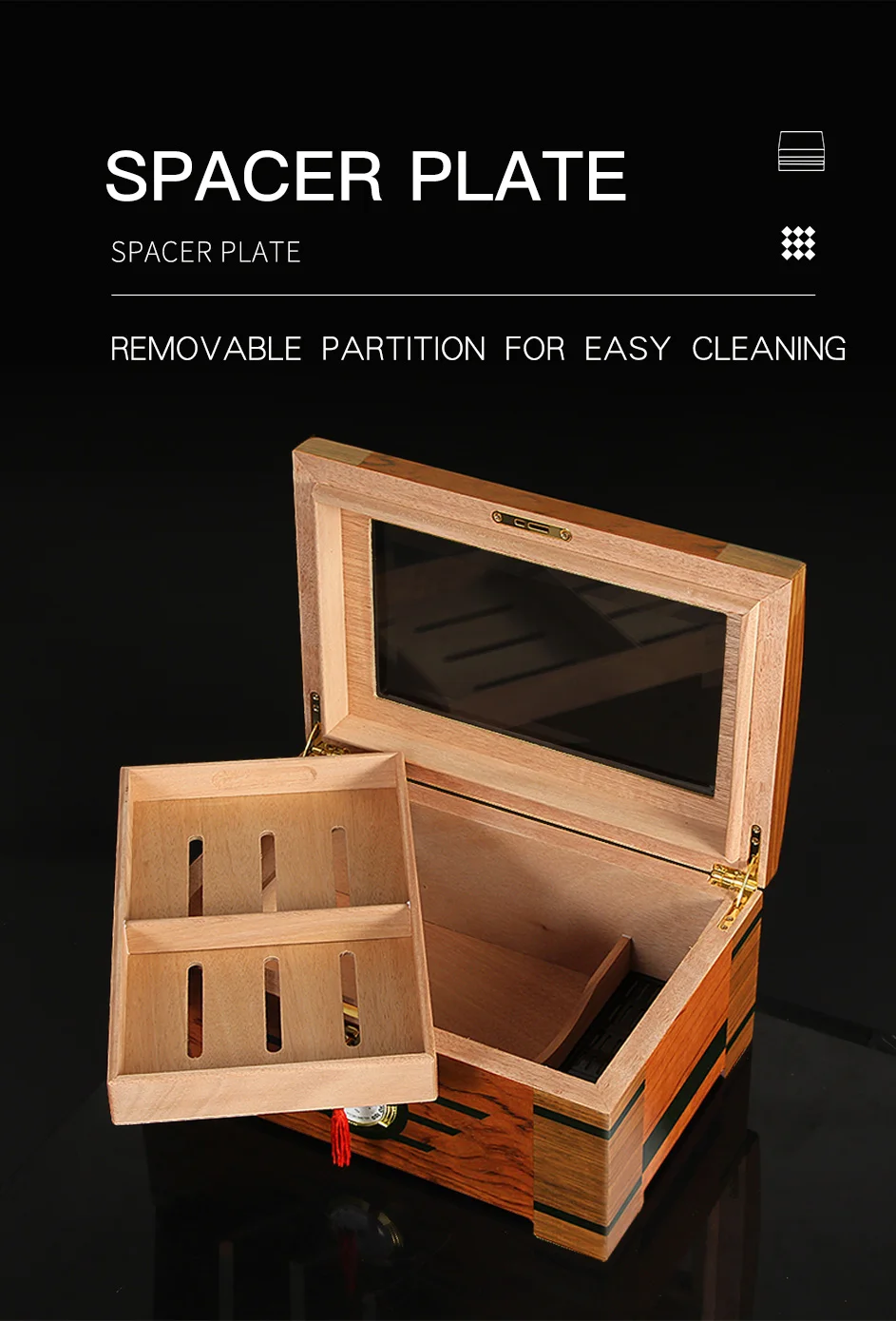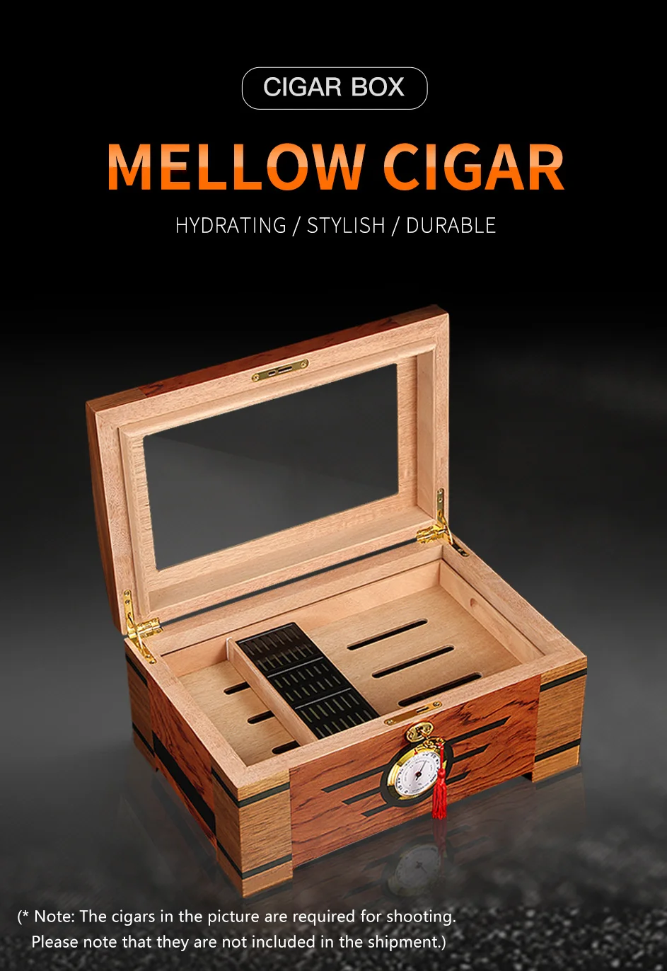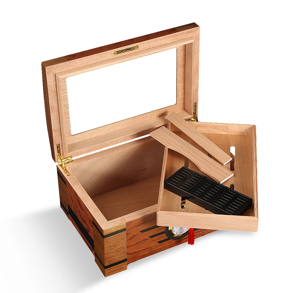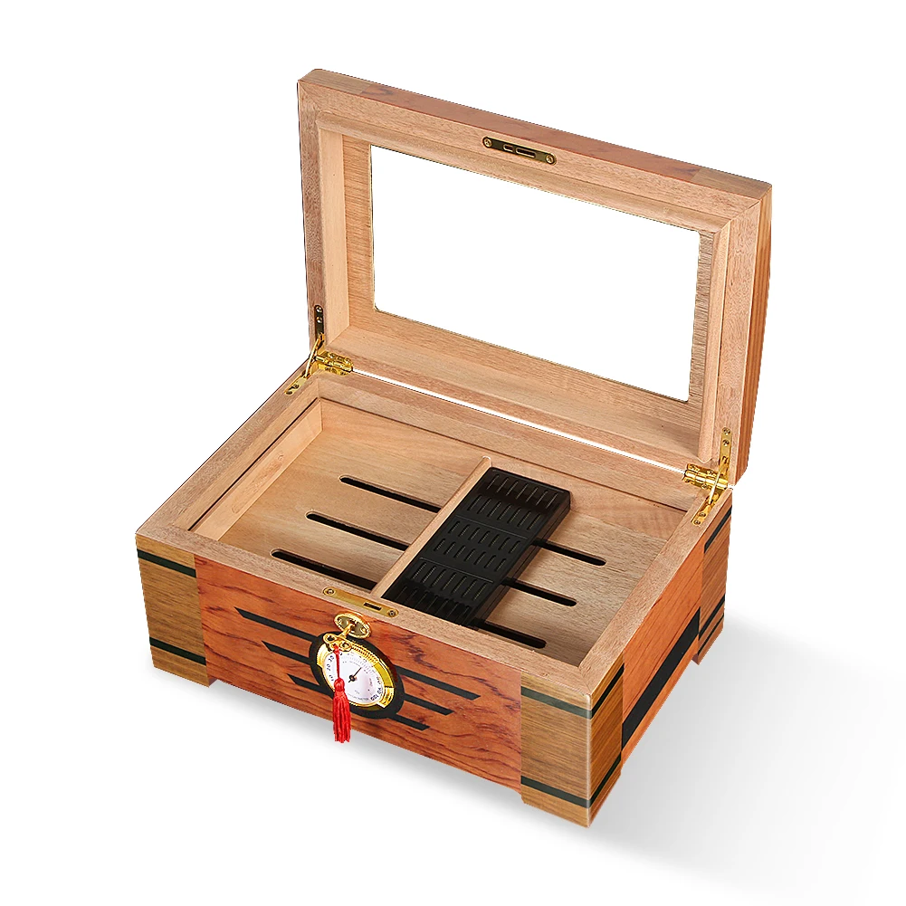 Galiner Стекло большой Ёмкость хьюмидор дерево кедра с подкладкой Блестящий жилет с увлажнитель с гигрометром установки для увлажнения сигары Box