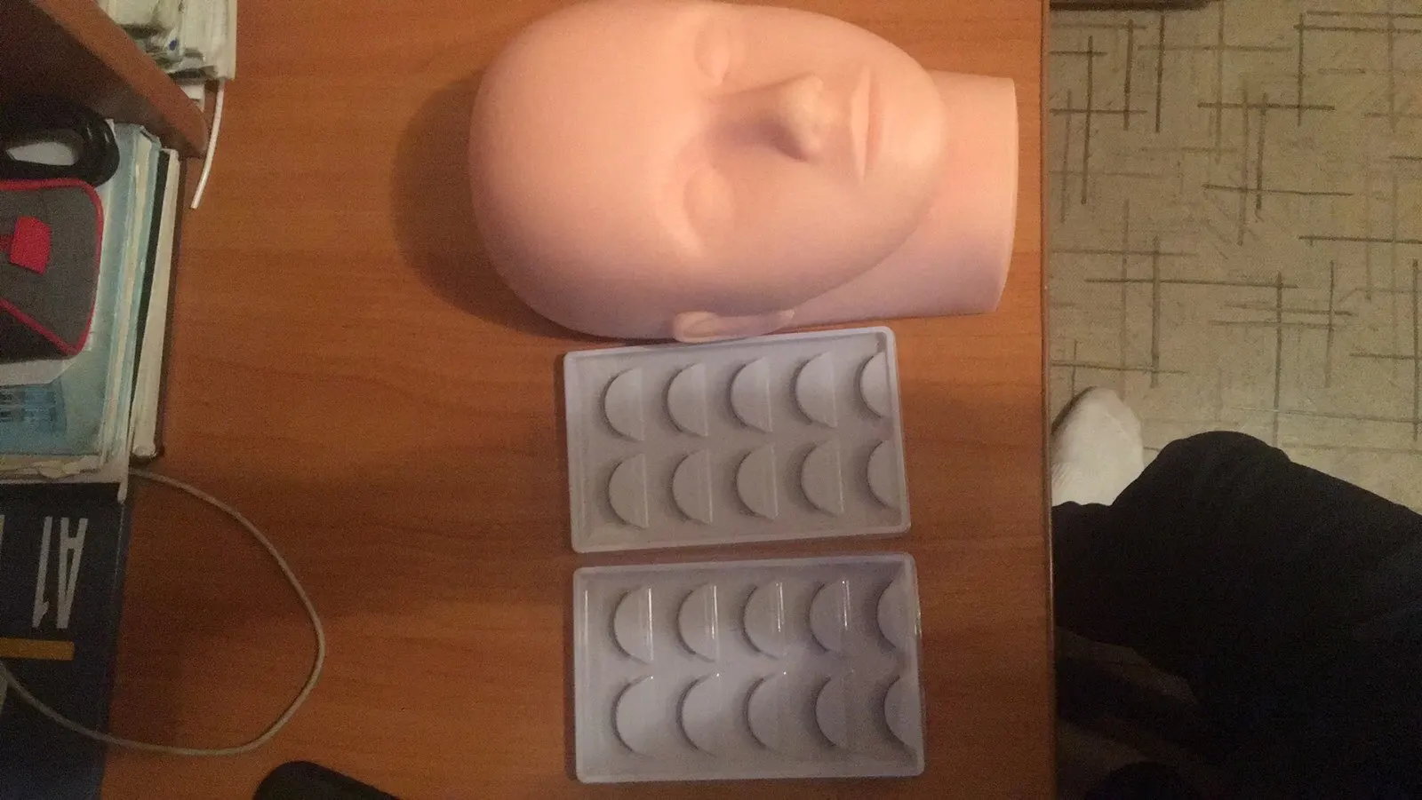Заказала 26.10, пришло 17.11. Москва. Качественный манекен. Абсолютно идентичный дорогим аналогам в магазинах. Неприятного запаха нет. Ресницы в комплекте очень хорошие, довольно плотно расположены к друг другу, имитируя натуральность. Наращивать удобно, манекен не прогибается, где не должен, как и на человеческом лице.