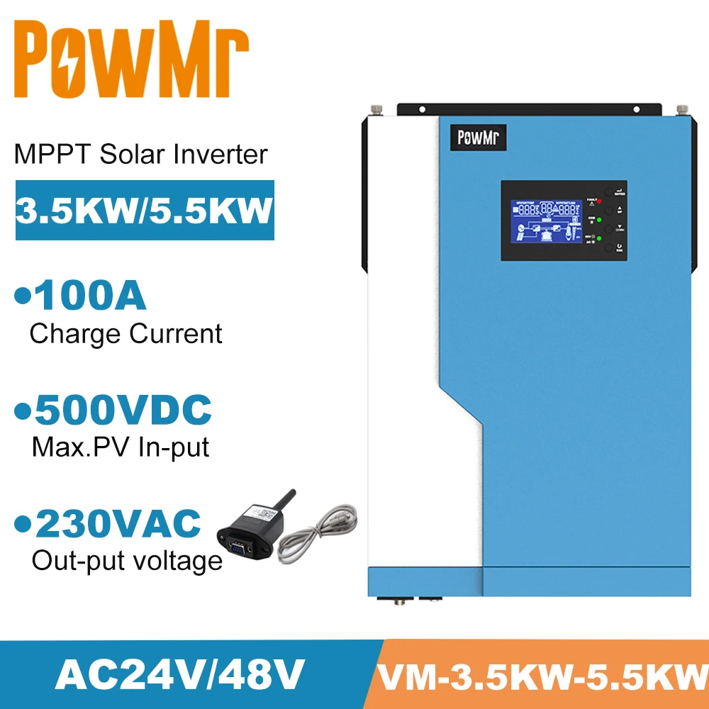 Инвертор солнечной энергии PowMr, инвертор немодулированного синусоидального сигнала 500 А, MPPT зарядное устройство 24 в 48 В и PV в, гибридный инвертор с Wi-Fi монитором