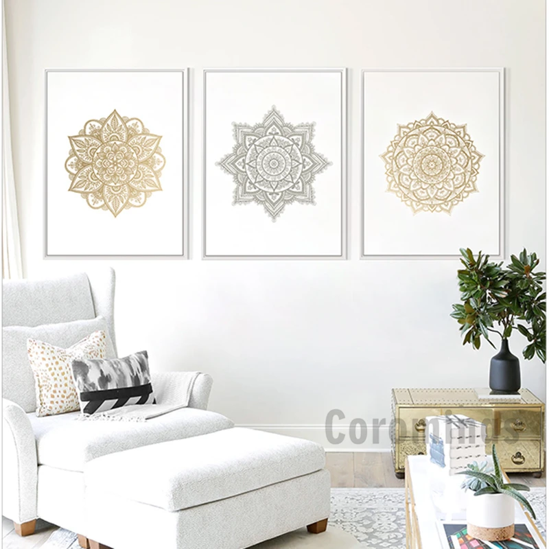 Картина на холсте с изображением мандалы, золотые Цветочные настенные художественные принты, геометрический богемный Современный домашний декор, плакат для декора гостиной icon star icon star icon star icon star icon star