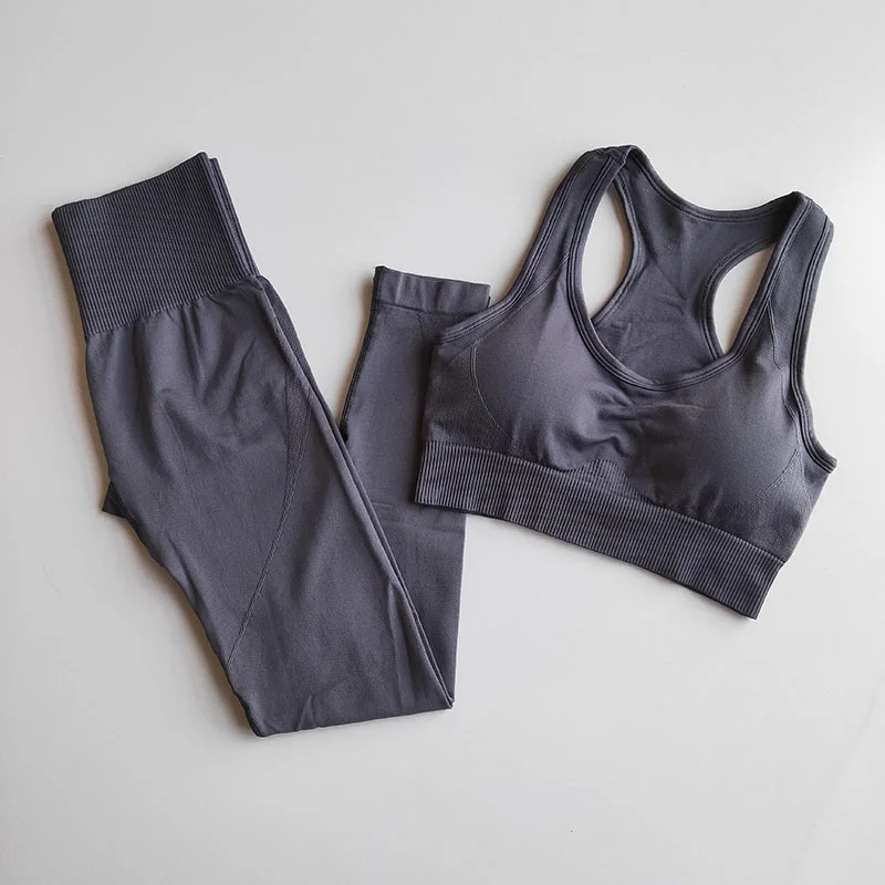 Однотонный бесшовный комплект для йоги женский спортивный бюстгальтер с мягкими чашечками, леггинсы для фитнеса, спортивный костюм, женские спортивные костюмы, комплект для тренировок, спортивная одежда