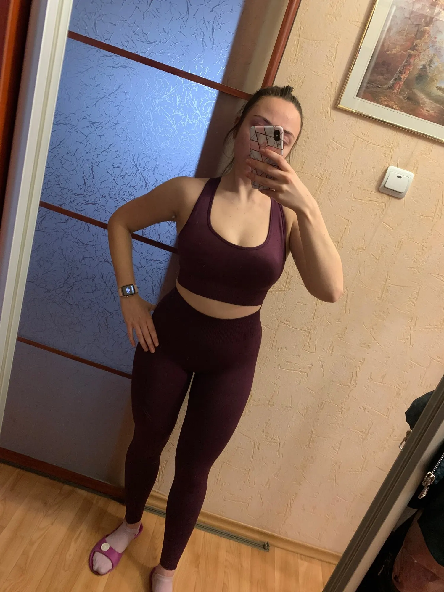 Костюм просто обалденный, идеально садится по фигуре и создает слегка утягивающий эффект. Качество шикарное, ткань плотная, не просвечивает, хорошо тянется. Это отличный вариант для занятий йогой, фитнесом, поездок на велосипеде, тренировок в зале, и другими видами спорта как в помещении так и на открытом воздухе ! Я выбрала green оттенок S размера, на мои параметры ( грудь 84 см, талия 62 см, бёдра 90см. и рост 164 см. ) комплект сел вроде неплохо, но за счёт плотной утягивающей ткани, я чувствую что размер М сидел бы лучше и мне было бы по комфортнее, но в принципе и этот носить можно. Обычно я ношу европейский S размер. Очень красивый и качественный костюм, рекомендую. Подробнее в i n s t a g r a m - @jelena_shoping
