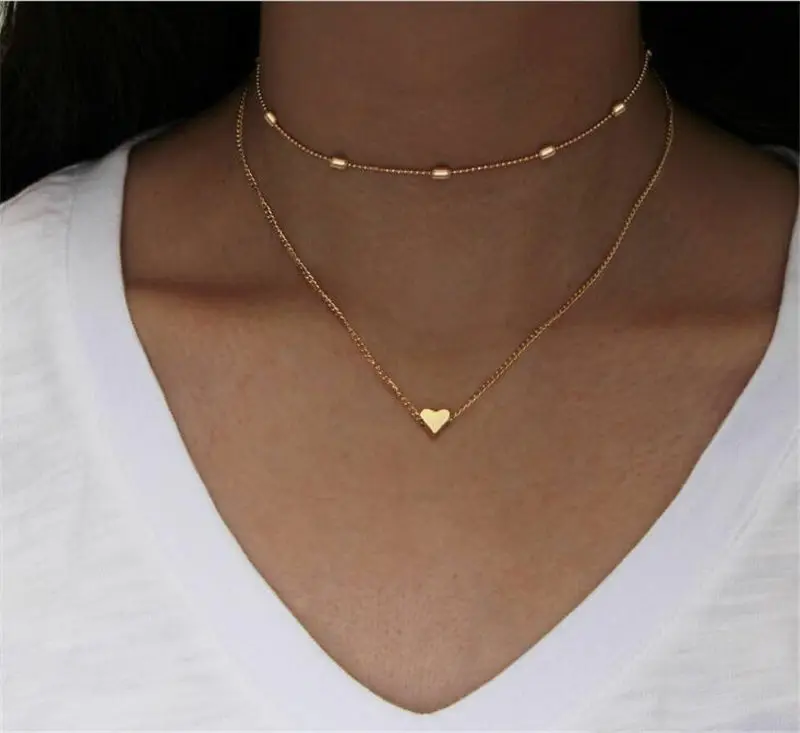 Цепочка-чокер Женская, многослойная, в форме сердца, подвеска в области ключицы