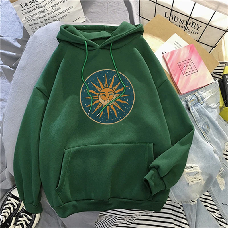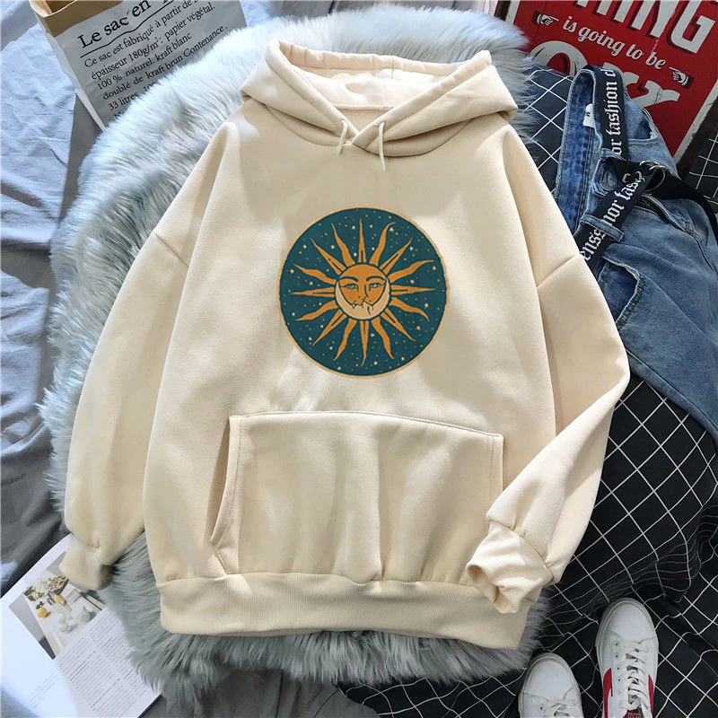 Свитшот женский в стиле оверсайз с Луной, винтажный свитшот с капюш...