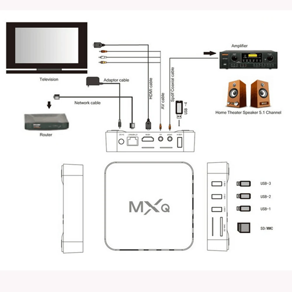 Мощный четырехъядерный процессор ARM Cortex-A53 Amlogic S905W с ультра высокой частотой до 1,5 ГГц, MXQ PRO-это hd-медиаплеер с пятиядерным процессором Mali-450, графическим процессором до 750 МГц. Гарантирует быструю и стабильную работу устройства даже при повышенных нагрузках.Android 9,0 OS. Благодаря ОС Android 9,0. вы можете легко получить доступ к потоковому видео и загружать приложения от Play StoreОбмена потоковыми мультимедийными данными (Airplay) Наслаждайтесь этим на большом экране и динамике bost2,4G/5 ГГц ac Wifi С двухдиапазонным Wifi 802.11ac, MXQ S905 5G обеспечивает надежный доступ к сети с высокой скоростью передачи данных.3D графический процессор Реалистичность как в театре! Вы будете шокированы 3D-стереоскопическим изображением у себя дома!Четыре порта USB 1 X USB-1,1 X USB-2,1X USB-3,1X USB-4;1 X SPDIF;1 X HDMI порт; 1 X Стандартный RJ-45