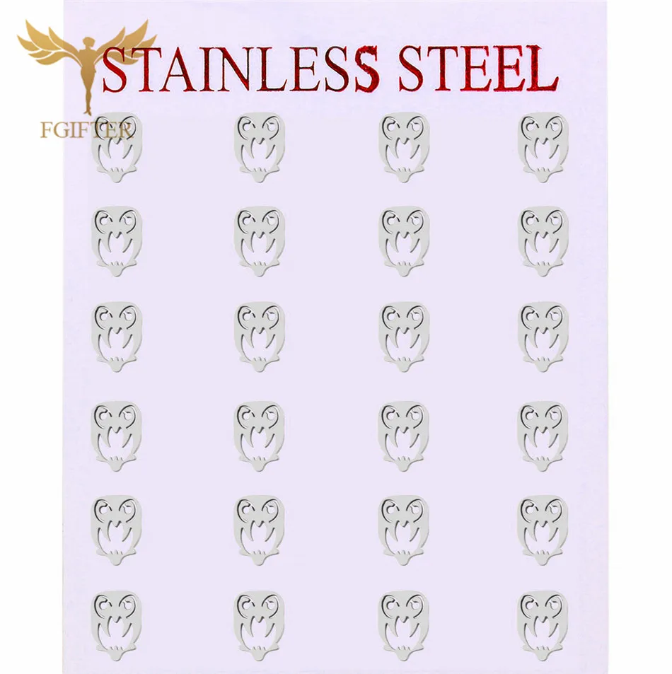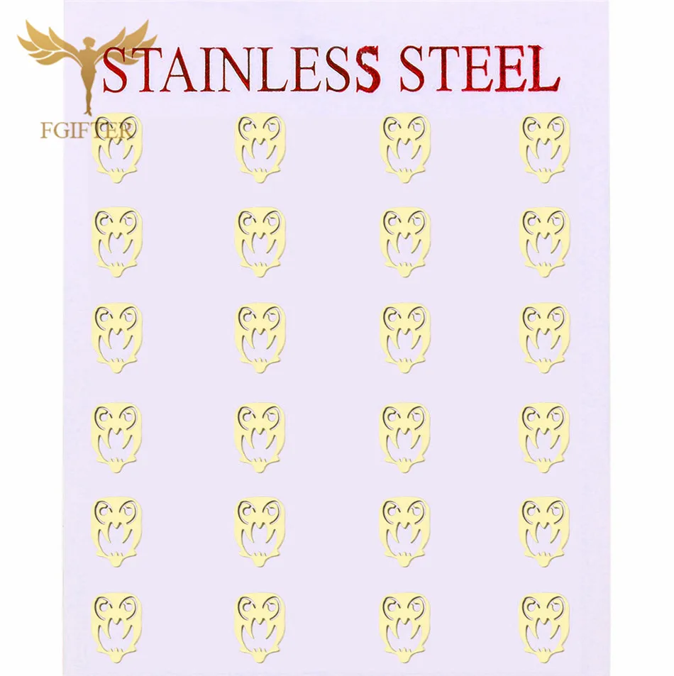 Милые серьги 2022 в виде совы аксессуары из нержавеющей стали комплект ювелирных изделий Оптовая продажа 12 пар