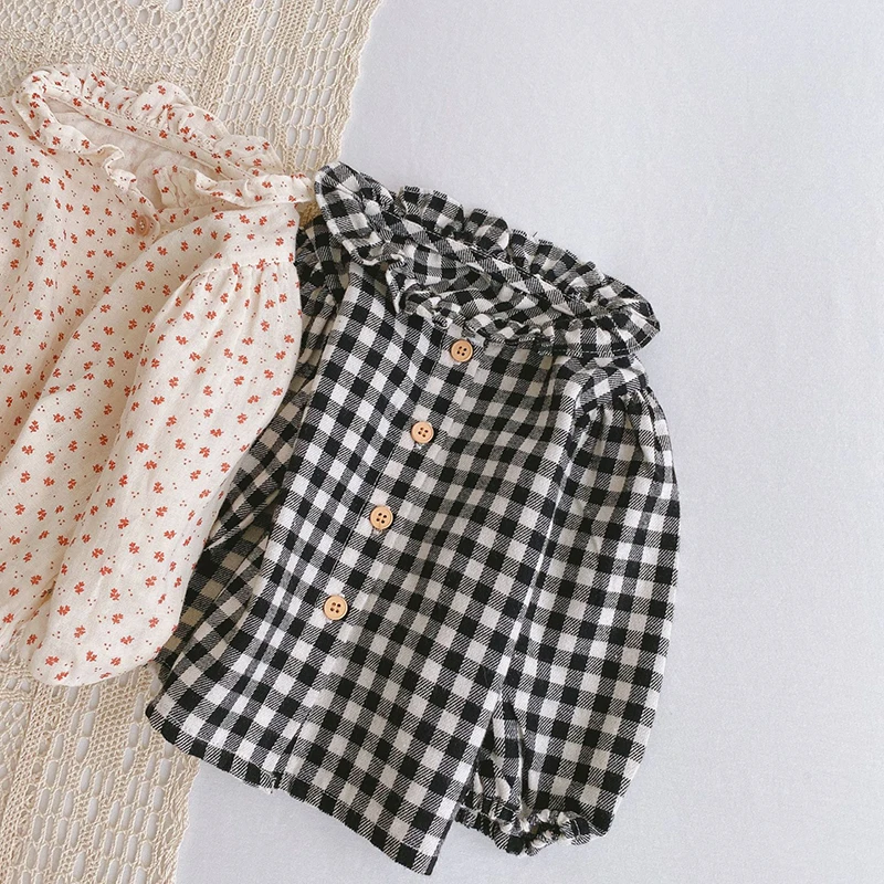 Рубашка в клетку для новорожденных, осень 2020, одежда с длинными рукавами и цветочным принтом для девочек, милые хлопковые комплекты одежды для новорожденных