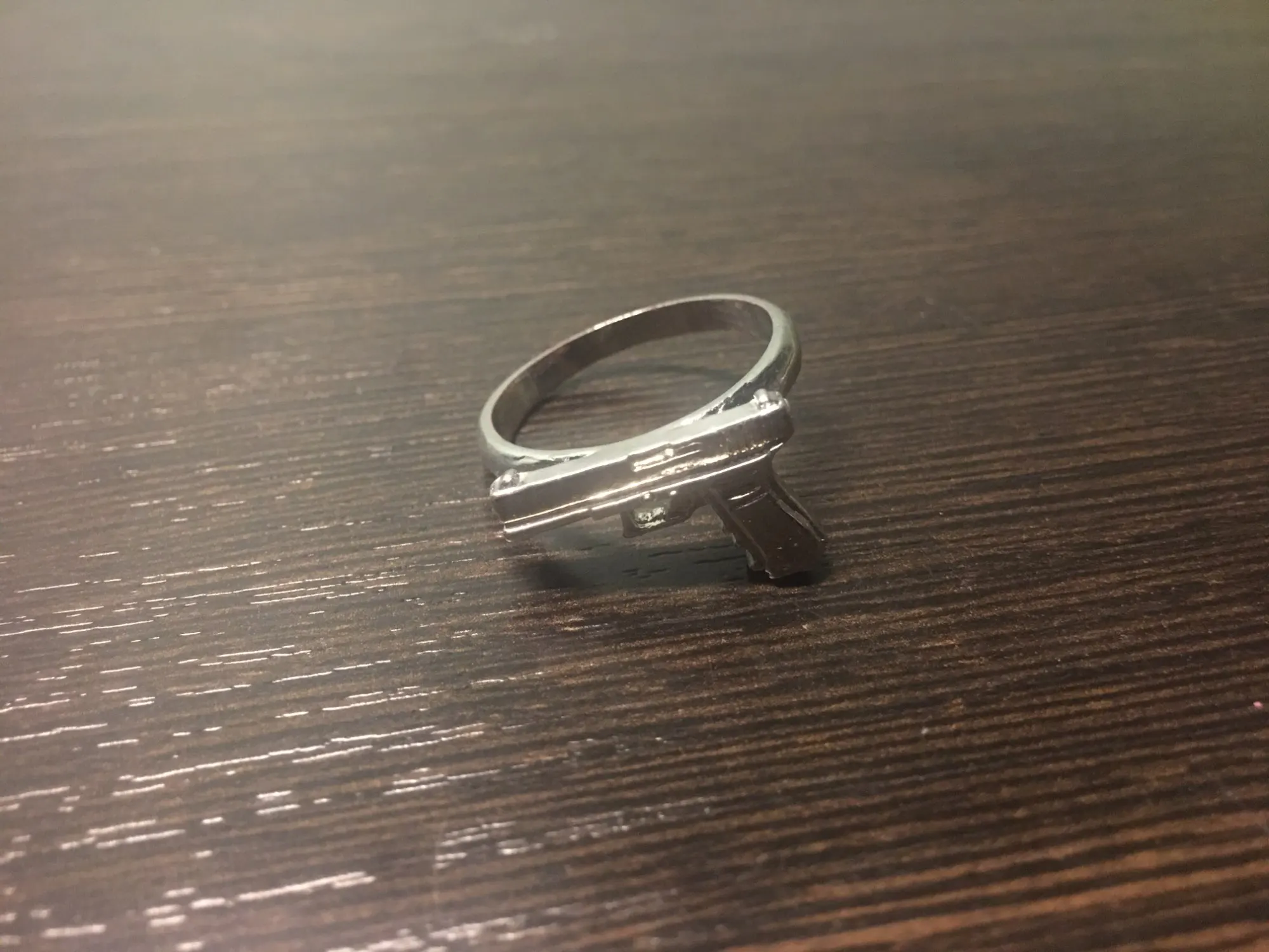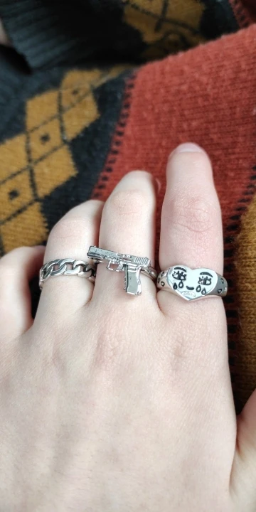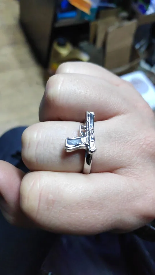 кольцо ужас,ожидание/реальнось не подходит описанию. не рекомендую. во 1) размер как-будто не на человека,а на мутанта. во 2) на фото красивый пистолетик,с гранями и вырезами,на деле кусок железа однотонного без вызезок почти