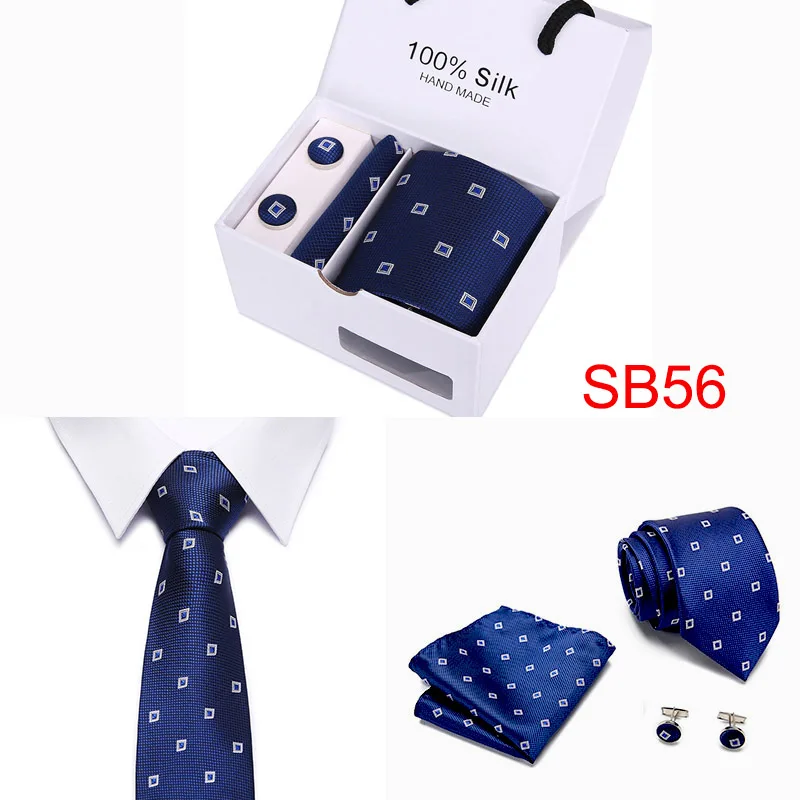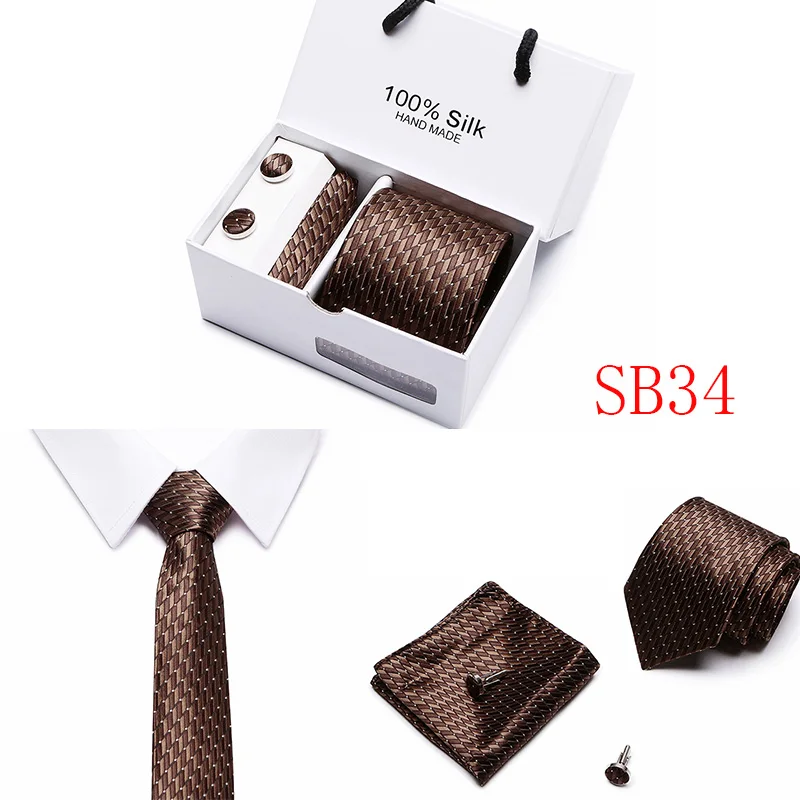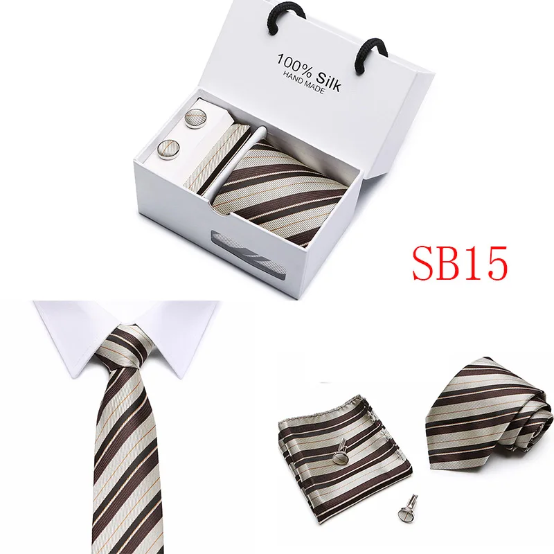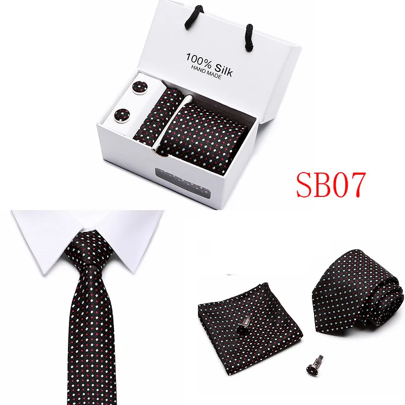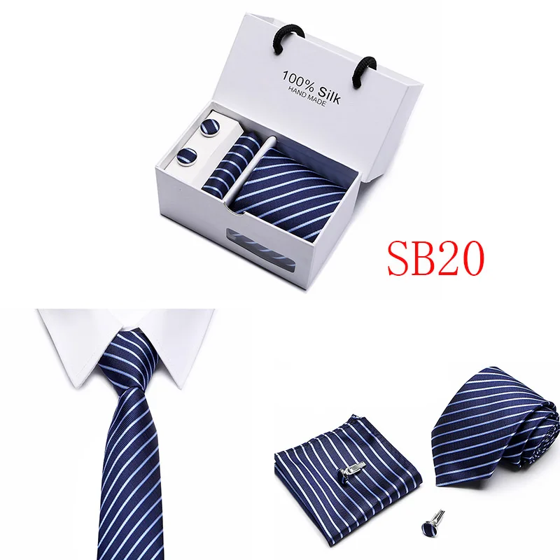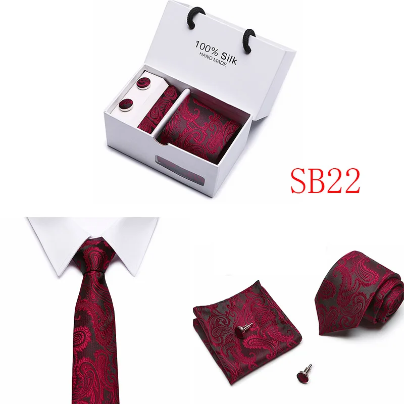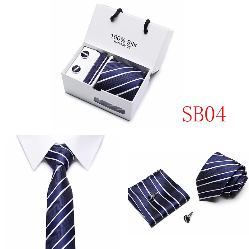 Мужские 7,5 см широкие шелковые итальянские галстуки Запонки зажимы Hankie наборы галстуков для деловых встреч