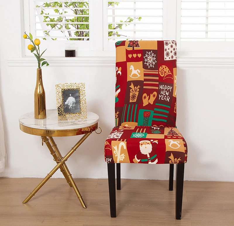Чехол универсальный эластичный на стул, чехлы для стульев в рождест...