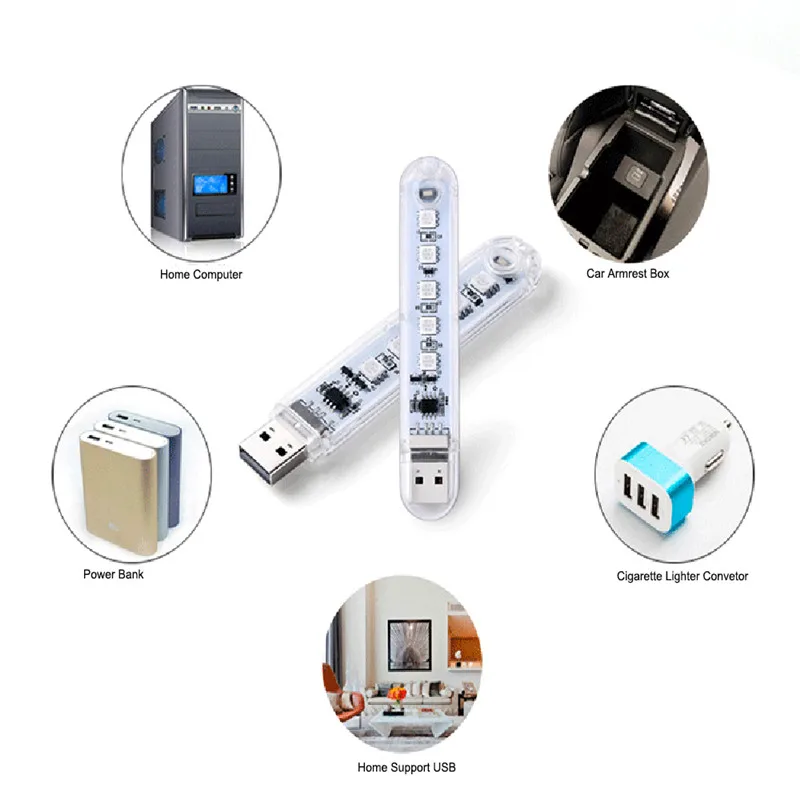 Мини USB Ночник светильник 5 светодиодов переносной RGB5050 книжный светильник s 5V для ПК ноутбуков компьютера мобильного питания лампа для кемпинга