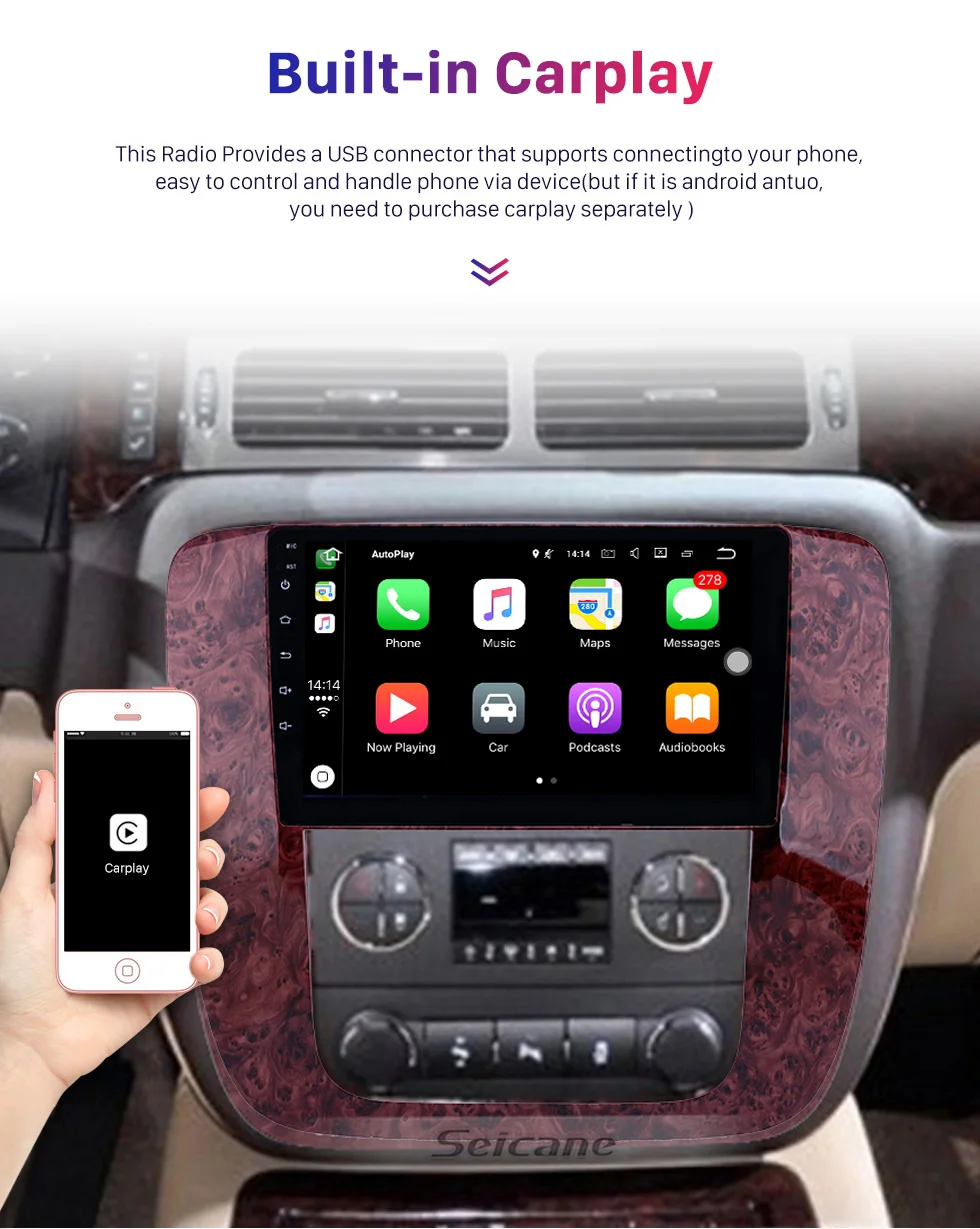 Seicane Android 10,0 Автомобильный GPS мультимедийный плеерДля 2007-2012 GMC Yukon/Acadia/Tahoe Chevy Chevrolet Tahoe/Suburban Buick Enclave