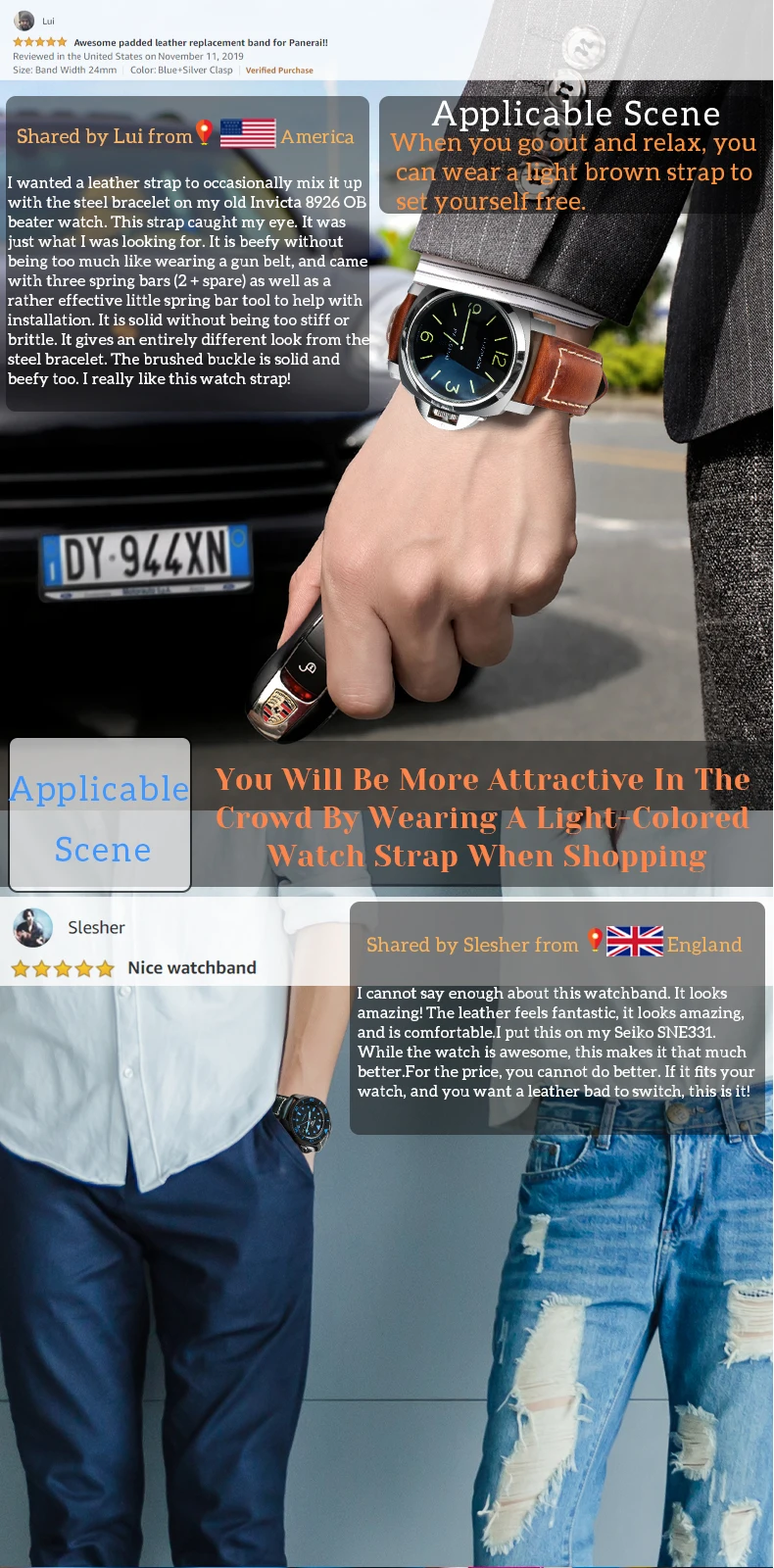 Вроде по качеству норм, на вид кожа, жесткая только как по Мне «думал по мягче будет». На большом «лапа здоровая» запястье видно по фото «желтая та нитка не к чему». Сменил застёжку на простую, давило сильно «на вечер хватило, не выдержал, кожу сильно давило». Всё равно лучше чем резина та что шла с часами «тоже короткий хлястик».