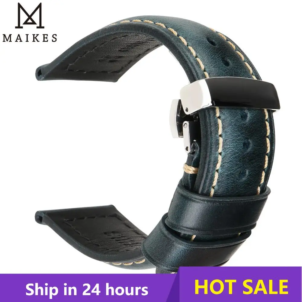 Ремешок MAIKES из натуральной кожи для наручных часов, браслет из телячьей кожи, аксессуары для часов, браслет с пряжкой-бабочкой, 18 мм