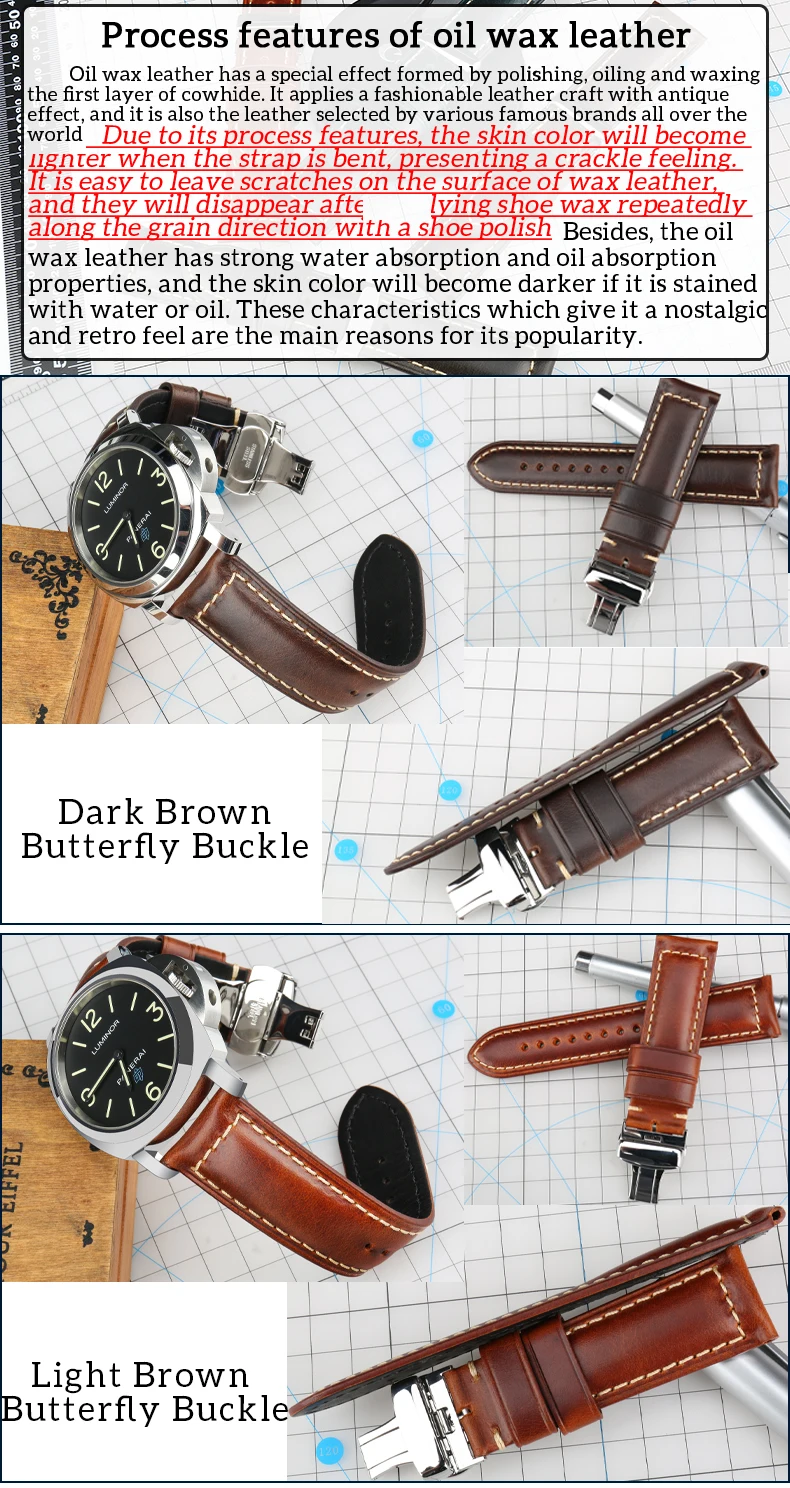 Ремешок для часов MAIKES из натуральной кожи, коричневый кожаный ремешок со стальной пряжкой-бабочкой, 18-26 мм