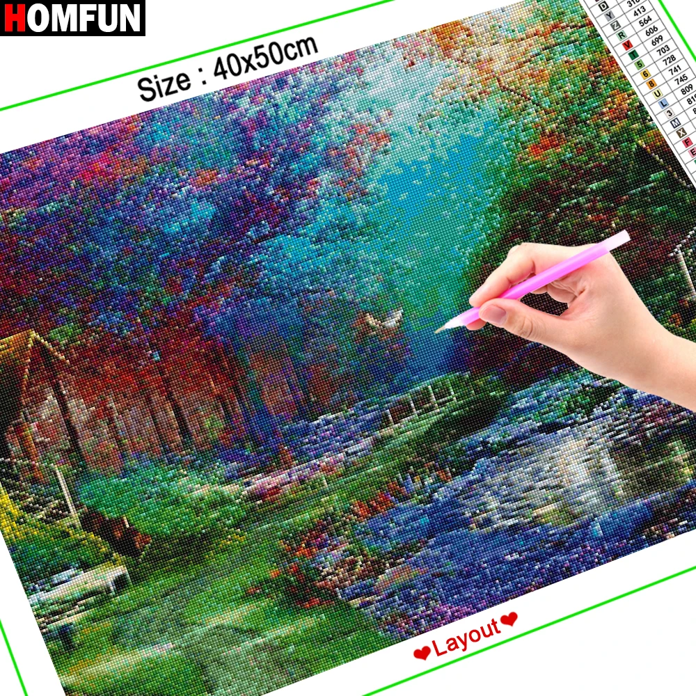 Алмазная 5d картина HOMFUN, полноразмернаякруглая картина дерево, озеро, горы, алмазная вышивка сделай сам, домашний декор