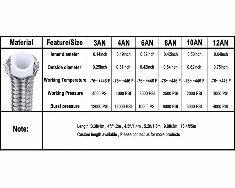 Шланг для гонок AN3AN4AN6AN8AN10, шланг с оплеткой из нержавеющей стали 304, с тормозом из ПТФЭ для мазутного охлаждения, длина 5 м