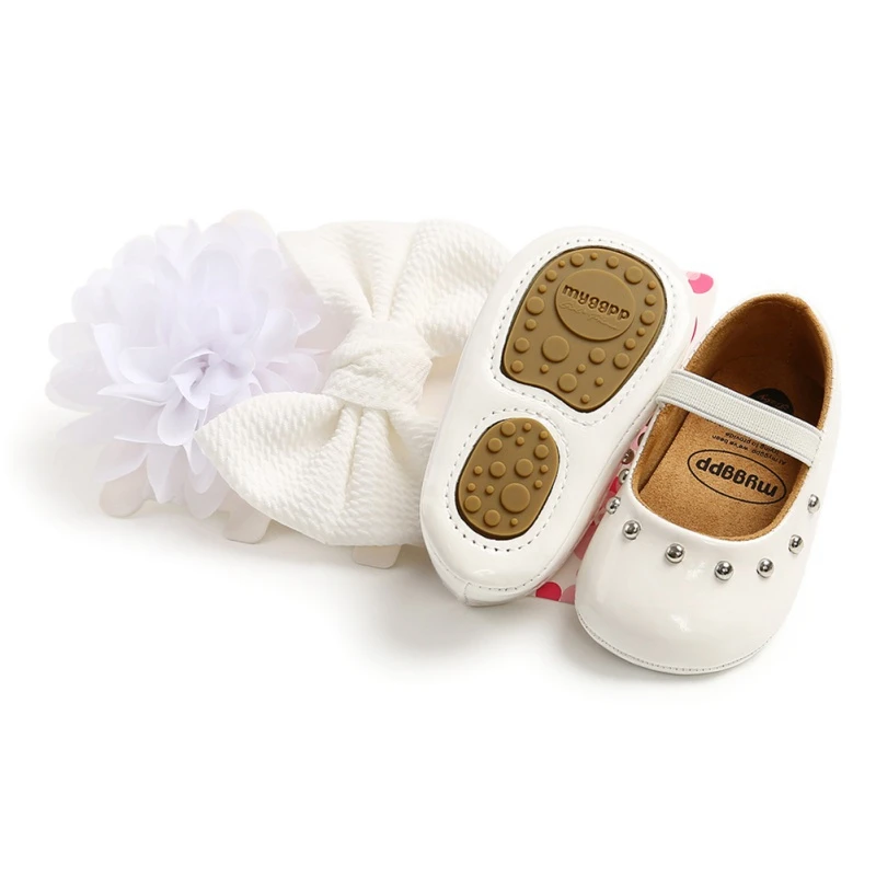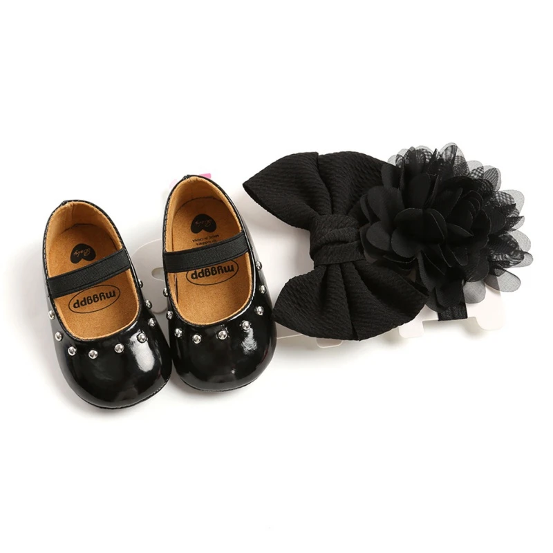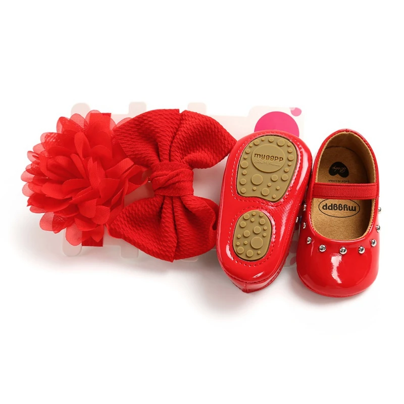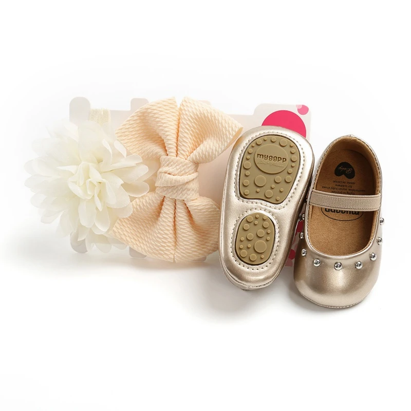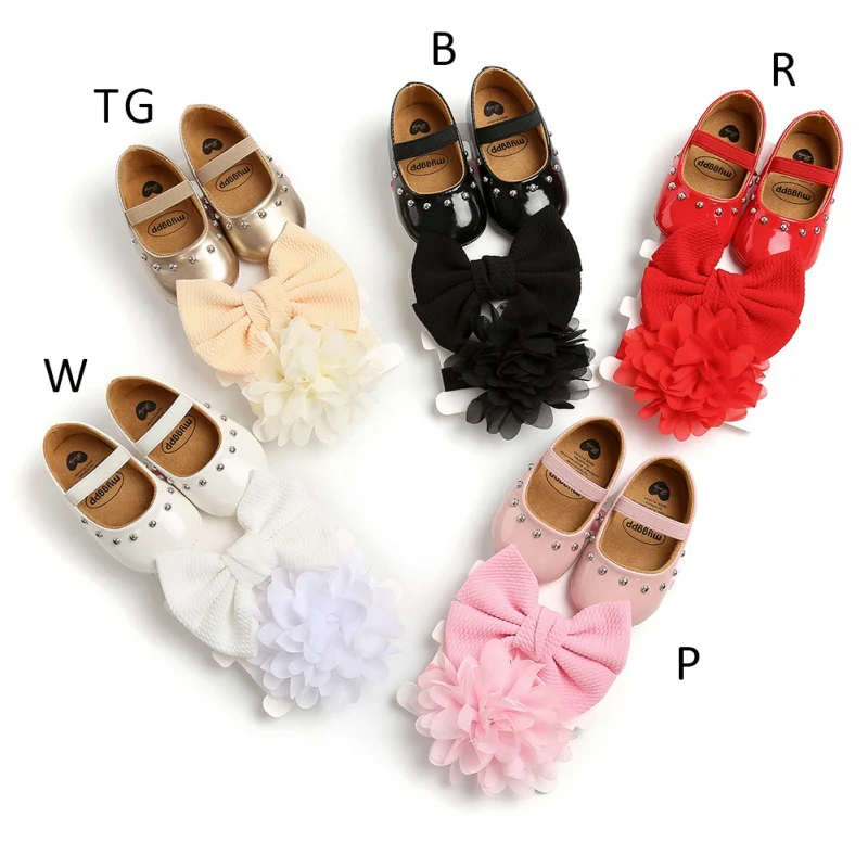 2020 0-18M девочка заклепки сладкая принцесса обувь + аксессуар для волос два комплекта