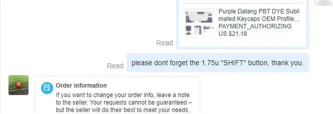 Я больше никогда ничего не покупаю в этом магазине, качество товара хорошее, проблема в обслуживании и отношении магазина, вот что происходит: 1. В день покупки я строго сказал магазину, чтобы не забыть ключ переключения 1.75U. 2. Товар прибыл через 3 недели, и думаю, что? 1.75U Shift я специально сказал им, чтобы не забыть... Его нет 3. Я быстро попросить магазин отправить его быстро, потому что мне нужно это срочно, и стандартная Почтовая доставка не была сокращена из-за времени доставки, И спросили, может ли он быть отправлен с помощью DHL вместо этого, они не могли. 4. Тогда я спрашивал, готовы ли они сделать частичный возврат, чтобы покрыть налоги и тарифы из моей страны, которые мне придется покрыть 2 раз из-за их ошибки, если они посылают товар с использованием стандартной доставки, они отказались. 5. Они назвали мой запрос «стыдно» и перестали отвечать Я никогда не виделся с продавцом, который был очень постыдным, когда его ошибка была в первую очередь