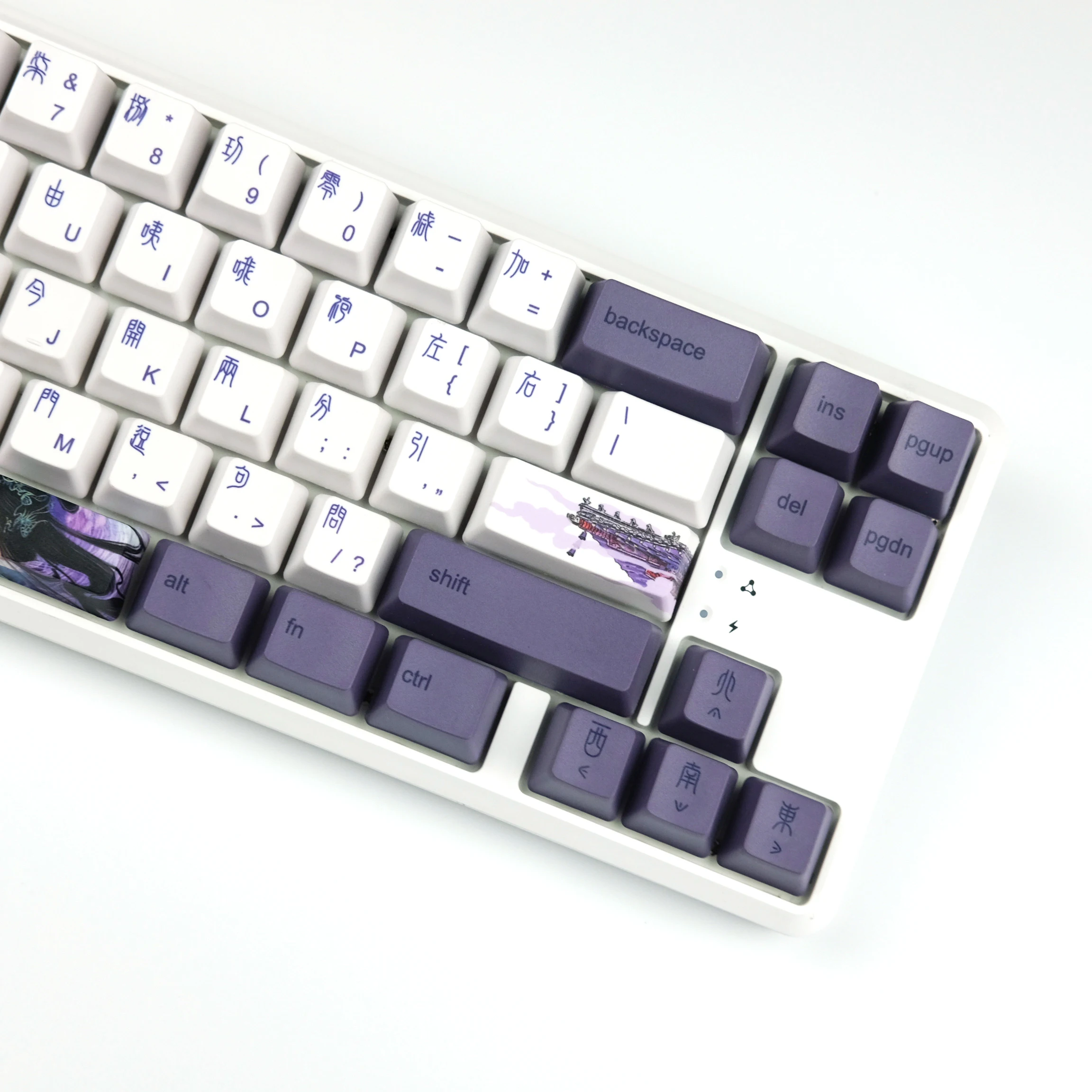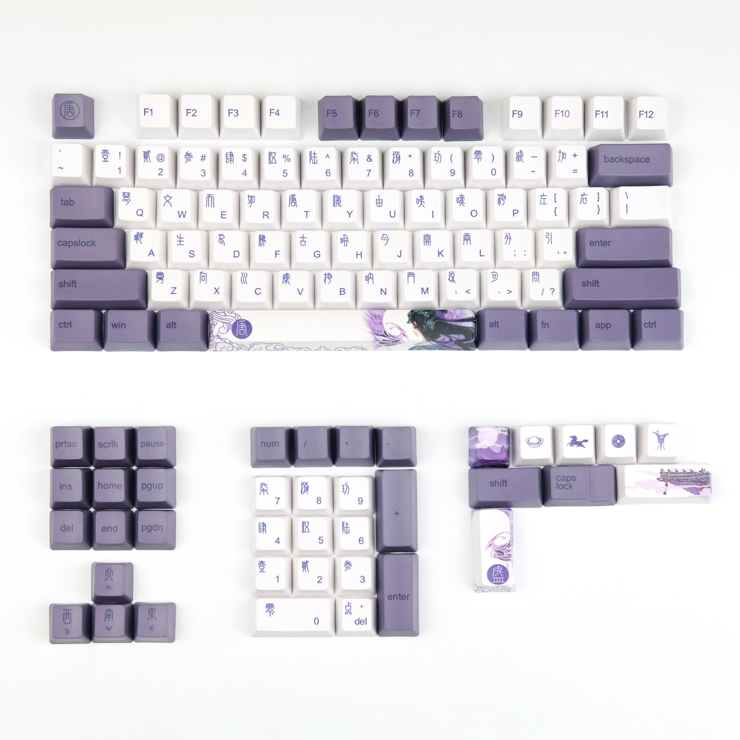Пурпурные колпачки для клавиш с принтом датанг ПБТ, OEM профиль, механическая клавиатура, 108 клавиши, лестница, индивидуальные колпачки 2U, клавиши переключения