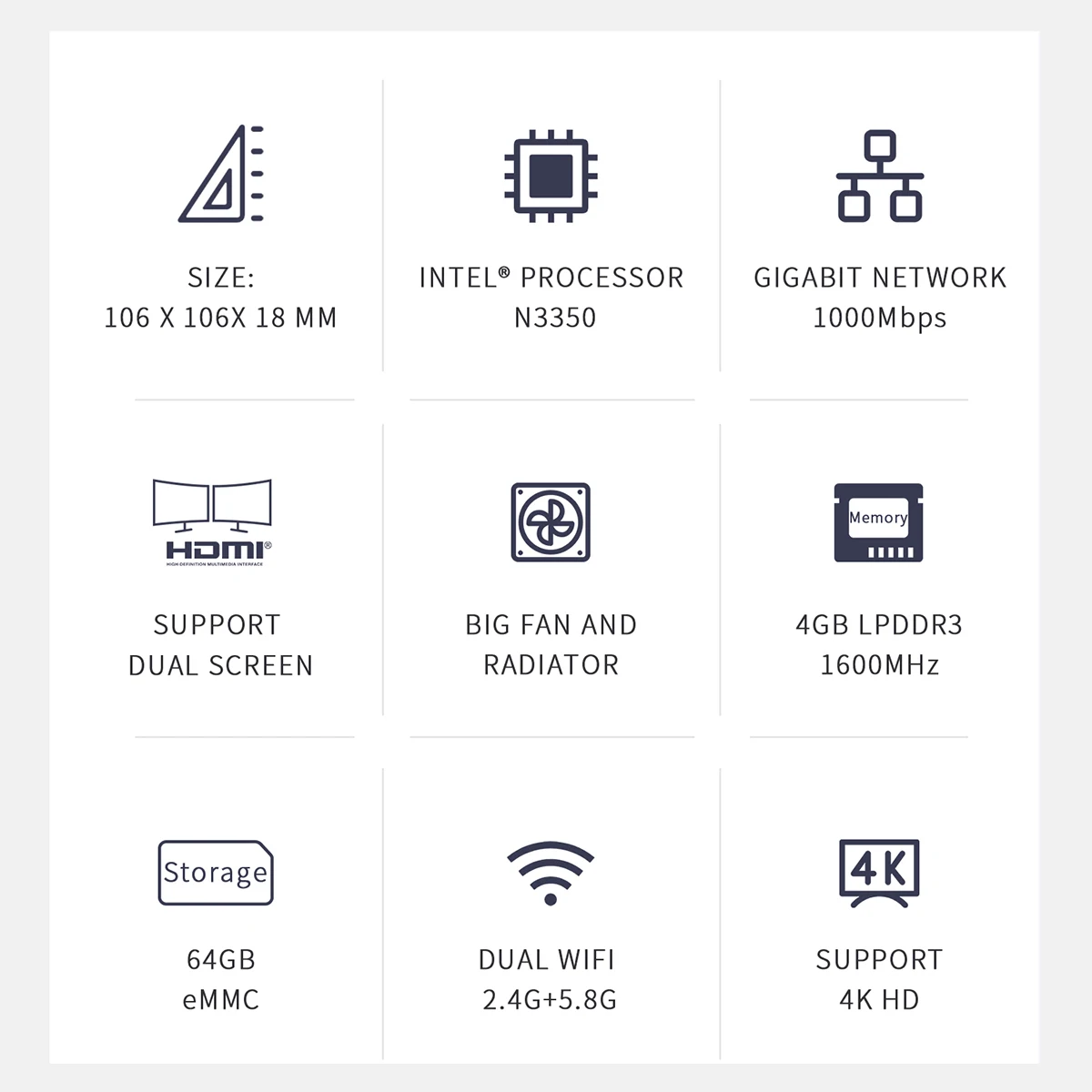 Мини-ПК Beelink T4 Pro, Intel N3350, Windows 11, 1000 Мбитс, Lan 2 * HD-MI, двойной дисплей, офисный компьютер, Windows 10, HTPC