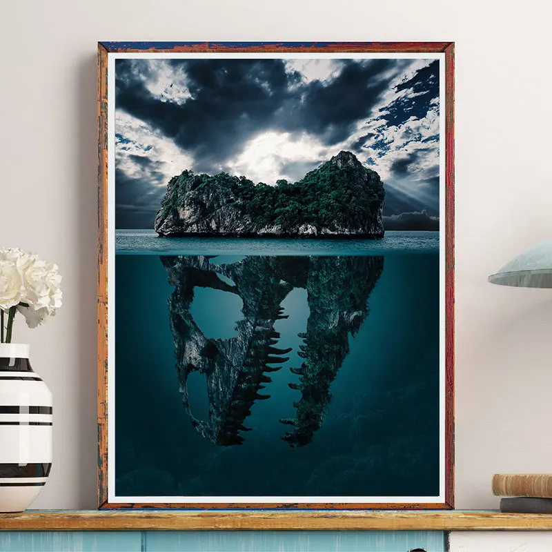 Современный таинственный череп остров Холст Картина Настенная живопись Череп картины постеры с изображением острова пейзаж картинки для гостиной Декор