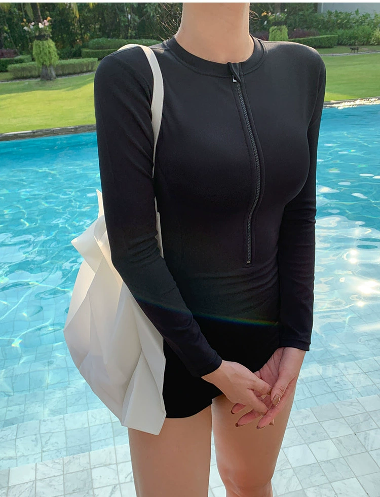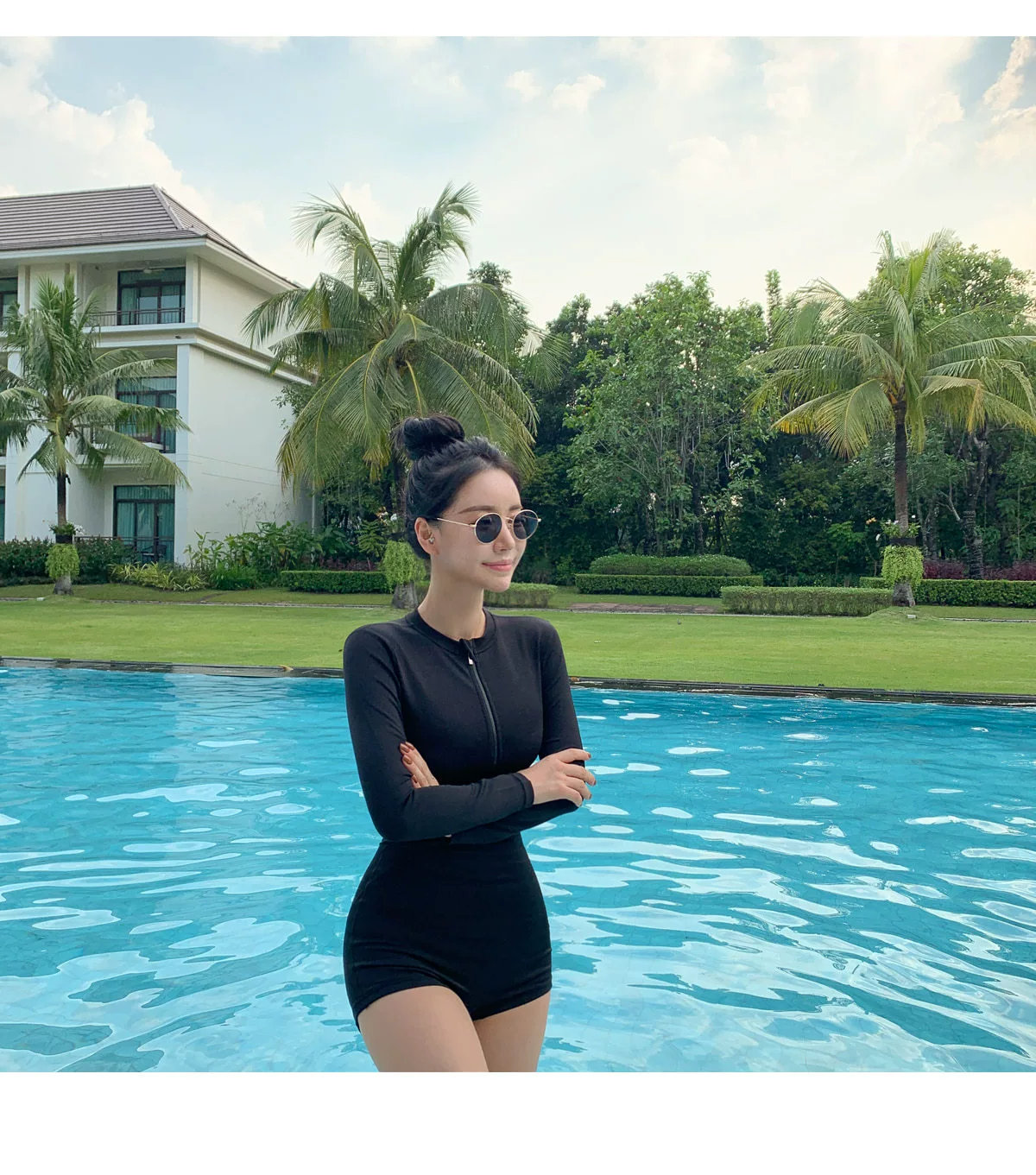 Женский Цельный купальник с длинным рукавом, Рашгард, на молнии, UPF 50 +, солнцезащитный, для плавания, серфинга, йоги, спортивный костюм, купальный костюм