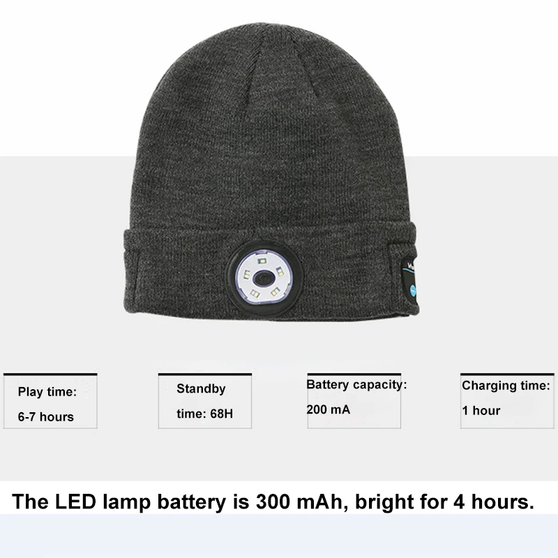 Теплая Шапочка Bluetooth 5.0 LED Hat, Беспроводная стереогарнитура, музыкальный проигрыватель с микрофоном, поддержка громкой связи, затемнение, перезаряжаемая