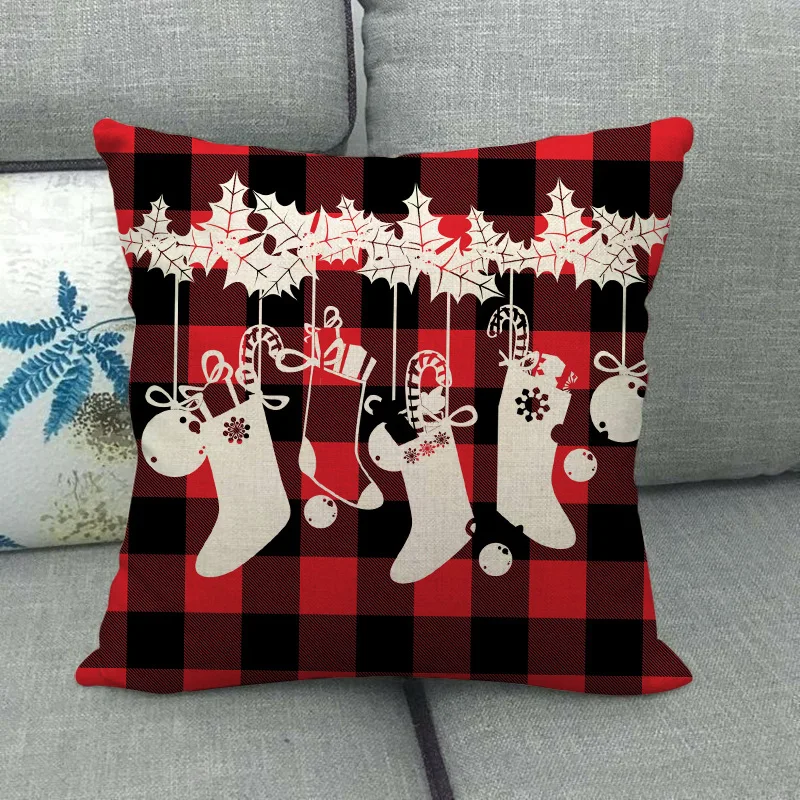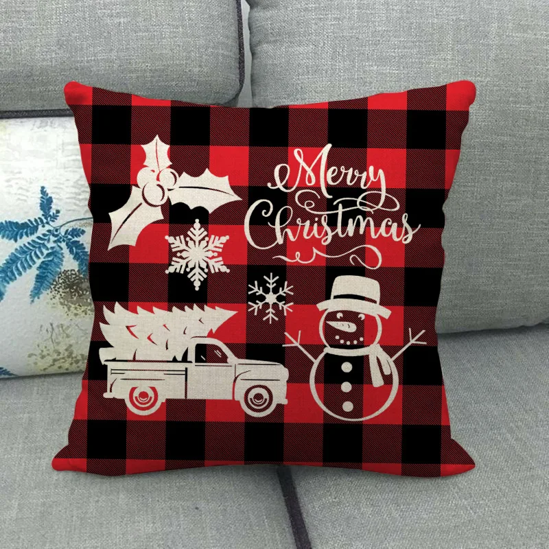 1 шт. Рождественский Алфавит олень Черный Красный клетчатый узор хлопчатобумажная льняная декоративная наволочка 40673