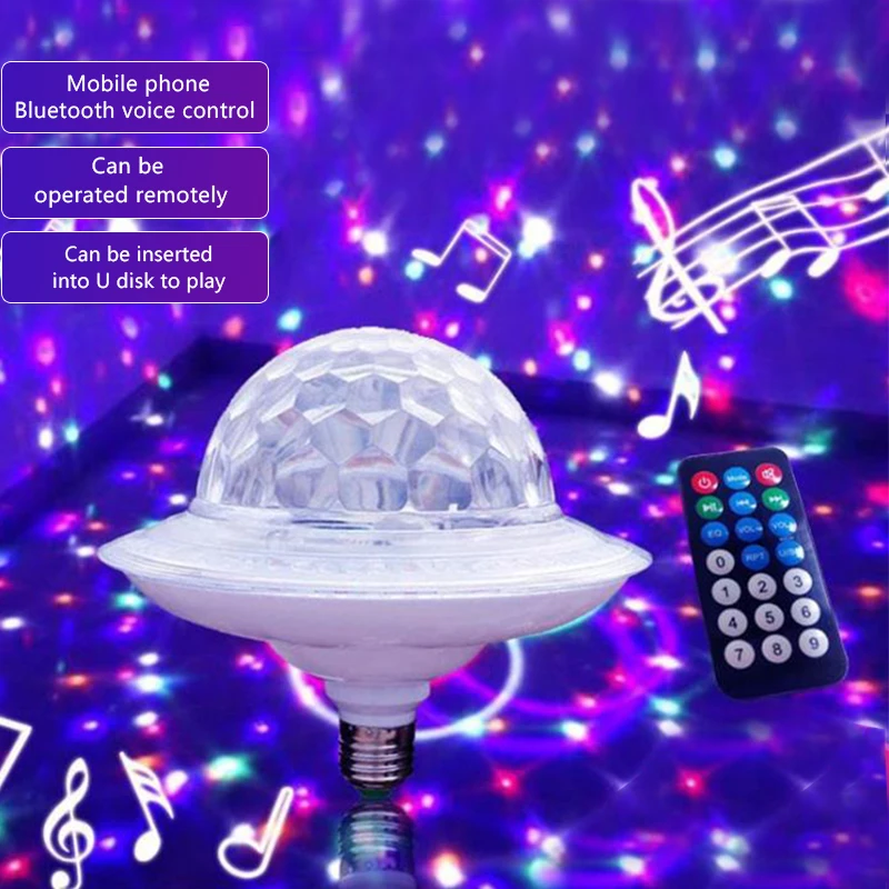 Сценический светильник НЛО, Bluetooth, дискотека с пультом дистанционного управления, E27, 12 Вт, RGB, световой эффект, праздничный декор, Рождественский подарок