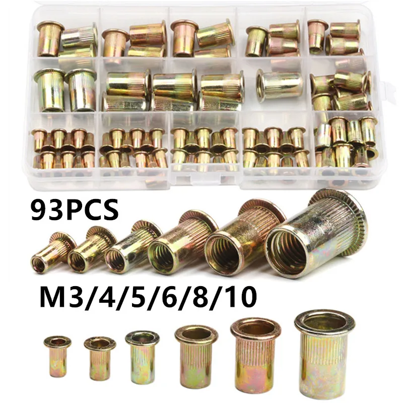 93 шт M3456810 Углеродистая стальная заклепочная гайка заклепки с плоской головкой Гайки комплект гайки вставить Reveting
