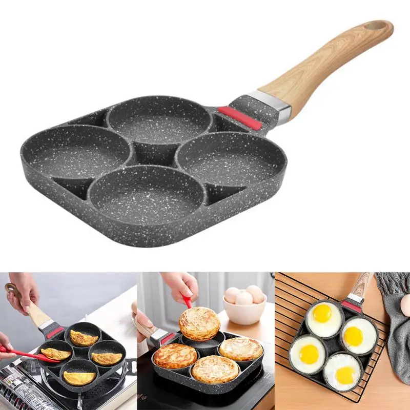 4 отверстия, жареное яйцо, сковорода, антипригарная ветчина, блинная машина, деревянная ручка, подходит для газовой плиты и индукционной плиты