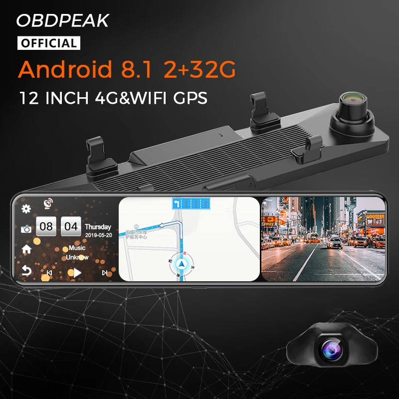 Автомобильное зеркало заднего вида, 12 дюймов, 4G + 32G 4G, Android 8,1, GPS, навигатор, двойная камера 1080P, ADAS, GPS, ночная съемка