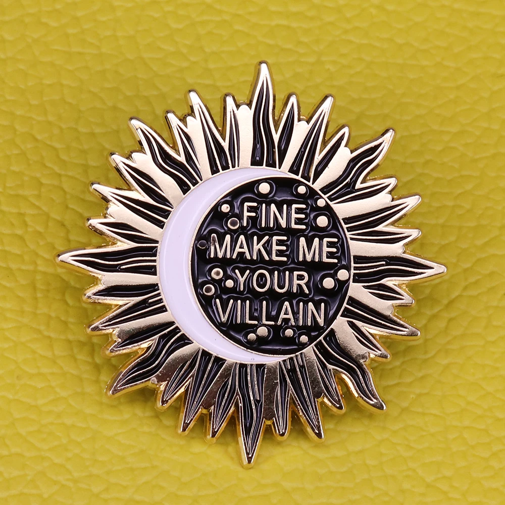 Металлическая брошь с цитатами сделай меня своими злодейцами