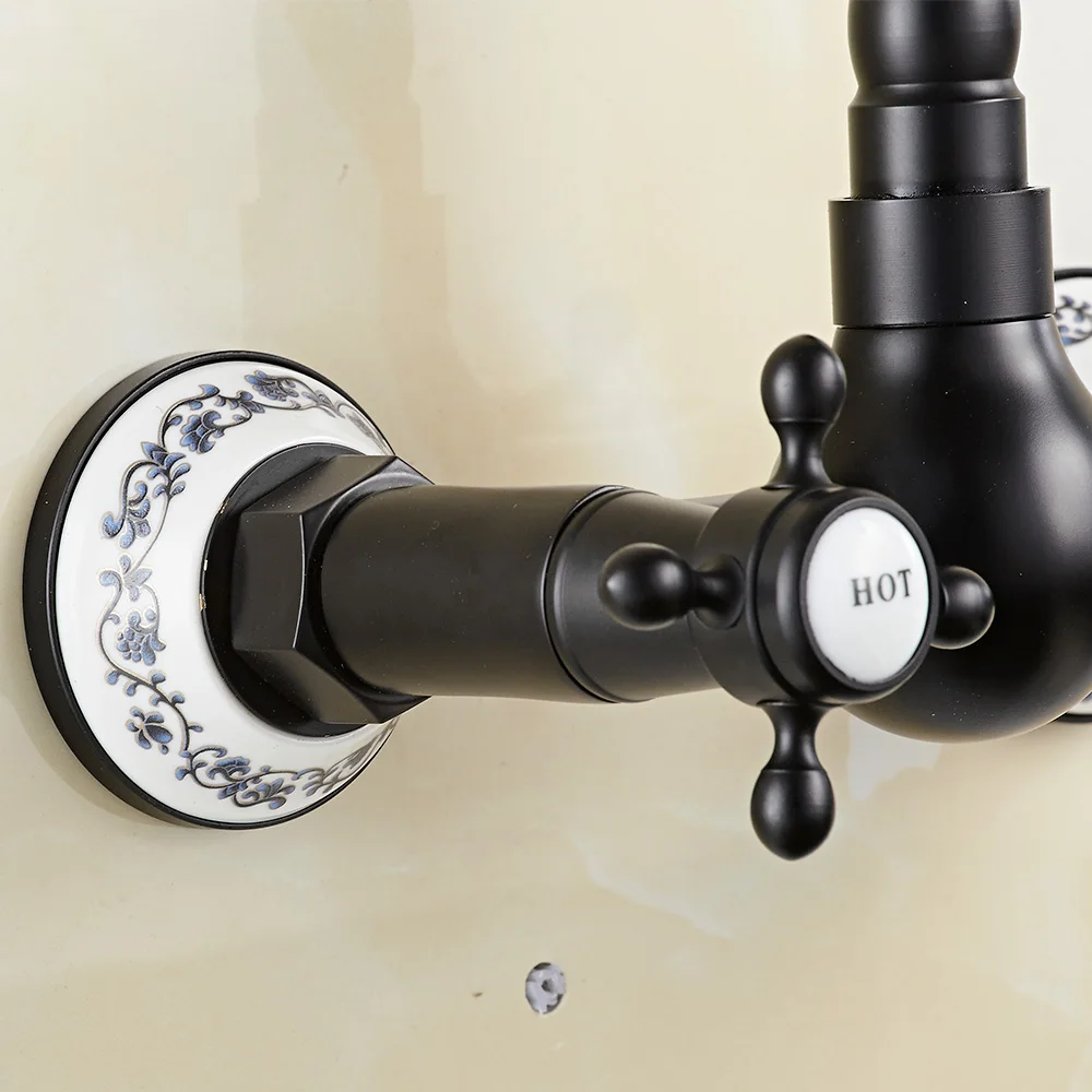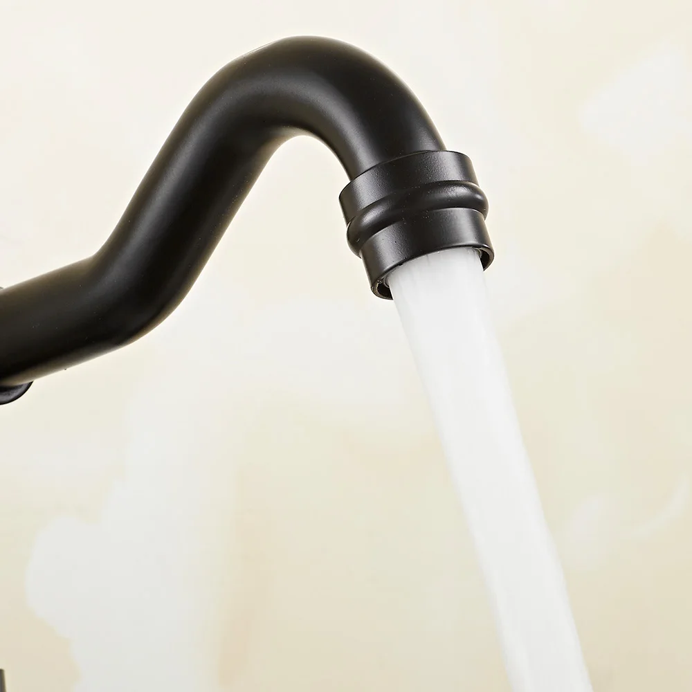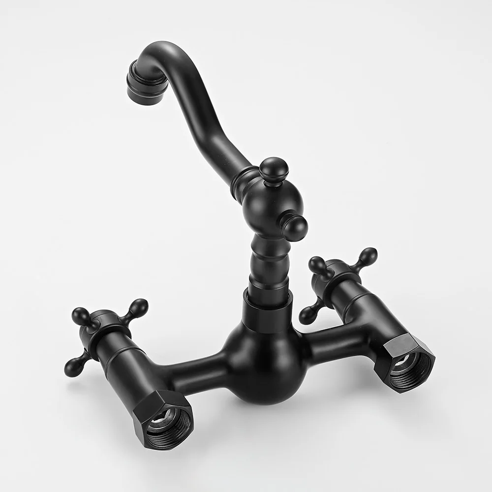 Черный смеситель для кухни, античный настенный смеситель с двумя ручками, вращающийся для горячей и холодной воды