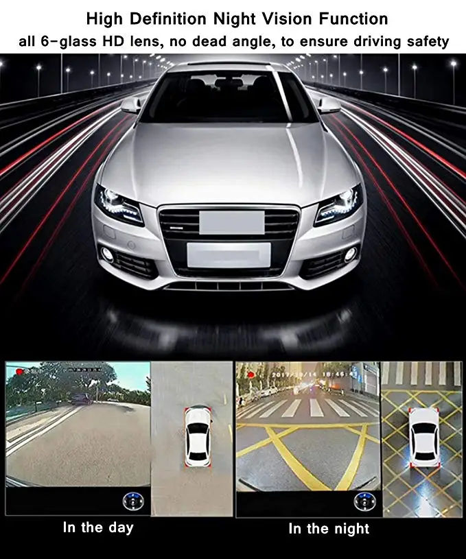 Описание:Эта Автомобильная камера с углом обзора 360 градусов-это технология поддержки, которая помогает водителям легко парковаться, лучше понимая окружающую среду автомобиля через виртуальный птичий глаз сверху транспортного средства. Это помогает водителю визуально подтвердить положение транспортного средства относительно линий вокруг парковочных мест и прилегающих объектов, что позволяет водителю маневрировать в парковочных местах с большей легкостью. Система может отображать вид «птичий глаз», «передний» и «задний» вид, что позволяет одновременно проверять окружение автомобиля на 360 градусов как спереди, так и сзади.Параметры продукта:Камера:1. Датчик изображения: PC10992. Размер оптики: 1/3 дюйма3. Шаг пикселя: 5,0 * 7.4um4. Эффективный пиксель: 720(h)* 480(v) пикселей5. Горизонтальное разрешение: 580 ТВ-линий6. Формат видео: NTSC7. Динамический диапазон:>72 дБ8. Отношение S/N: >48 дБ9. Минимальная освещенность: 0,1 люкс10. Угол обзора: 170deg11. Видео выход: 1,0 V & 75 ОмегаПосылка включает в себя:1 хост управления4 камеры (передняя, задняя, левая, правая)4 x удлинитель камеры1 x Жгут Проводов1 x Кабель для видеовыхода1 x инфракрасный приемник1 х пульт дистанционного управления1 Траппер1 x Руководство пользователя