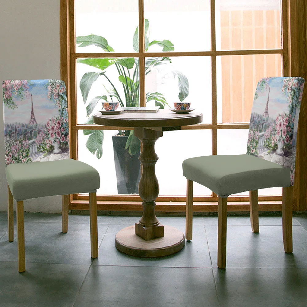 Чехол на стул из спандекса, с изображением садовых цветов, Парижа, акварельных красок, свадебные принадлежности, чехол на стул для обеда, эластичный, чехлы на стулья для отелей