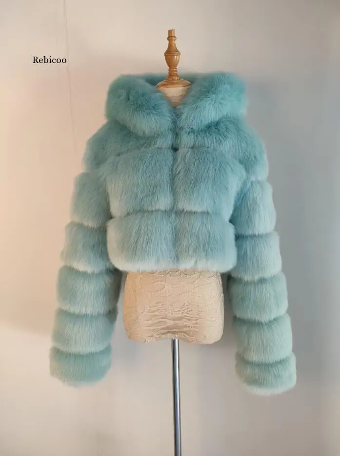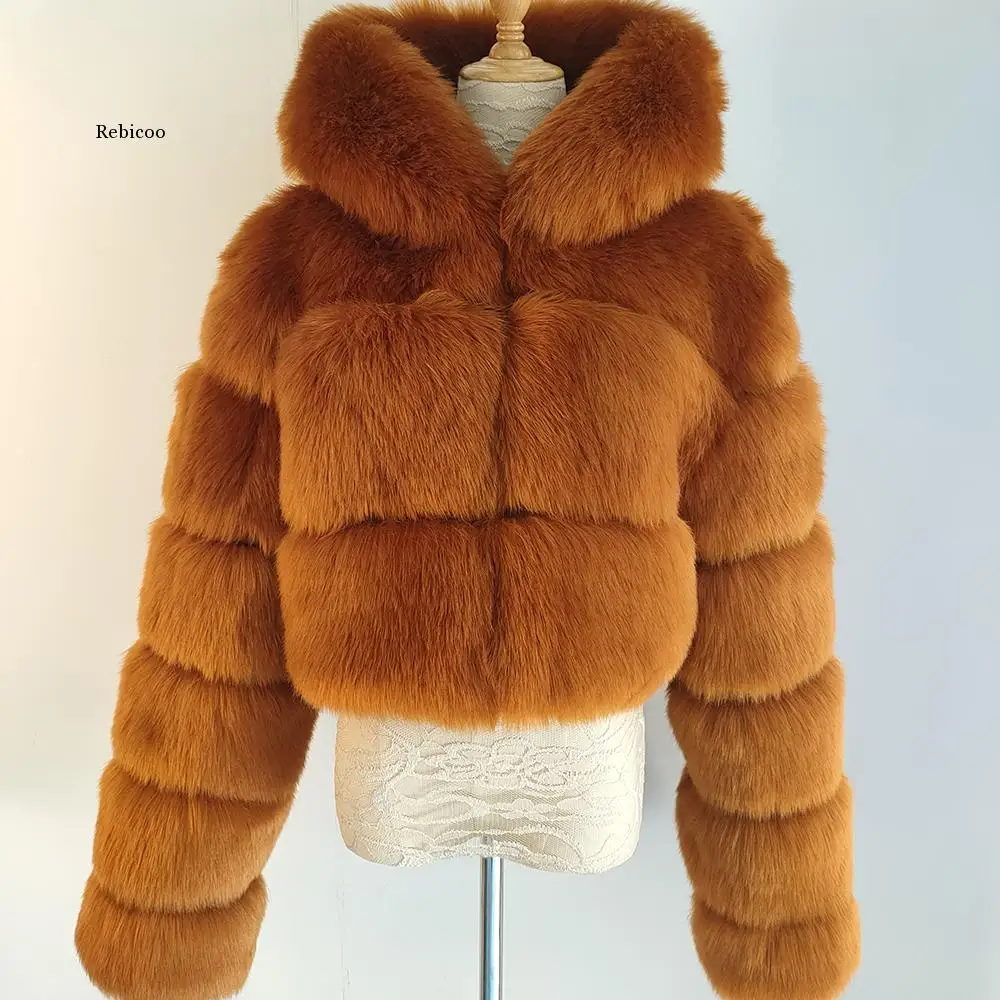 Куртка женская укороченная из искусственного меха, с капюшоном, теп...